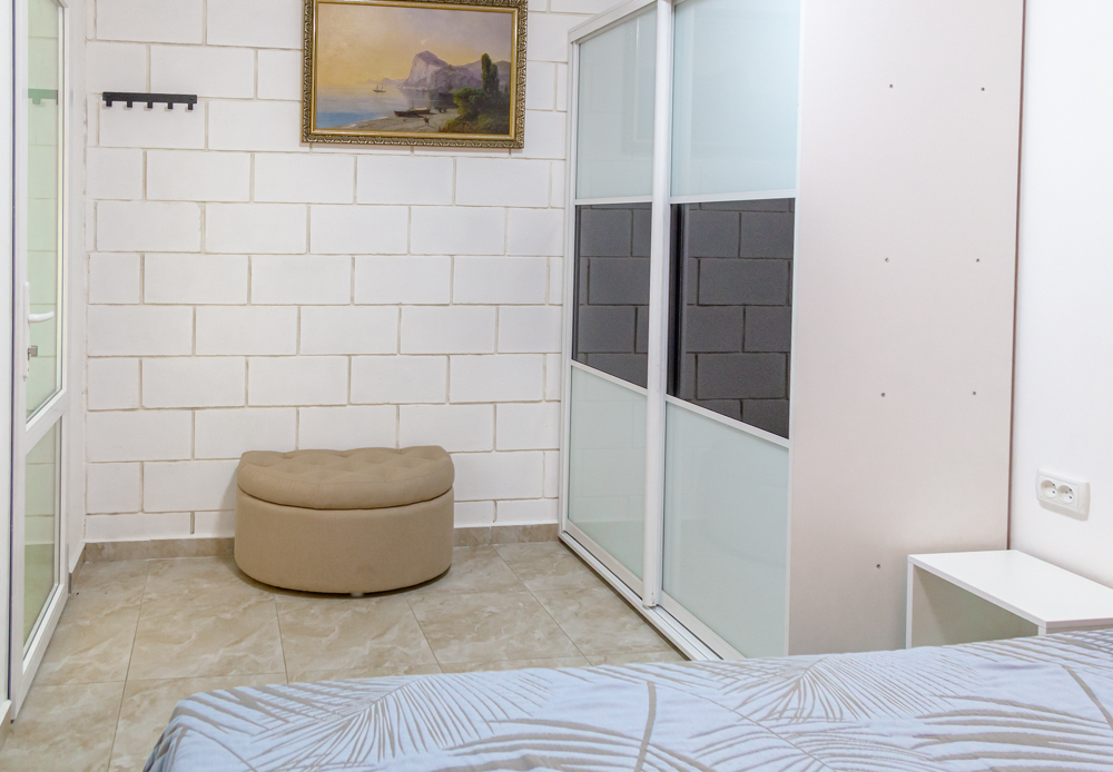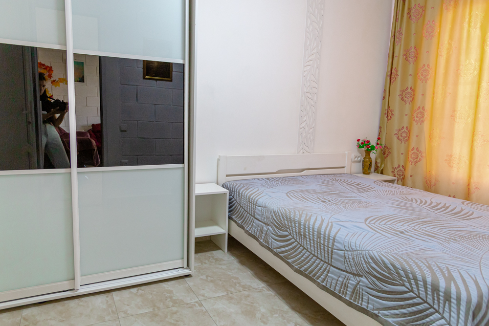 Уютные двухкомнатные апартаменты оснащены всем необходимым для комфортного отдыха: две двухспальные кровати, диван, два кондиционера, два телевизора, два шкафа и комод. Кухня полностью оборудована набором посуды и кастрюль. Предоставляем постельное белье и полотенца.
