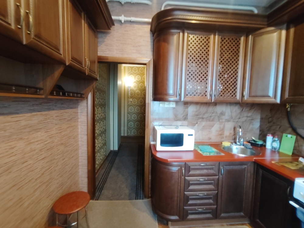 Большая двухкомнатная квартира с высокими потолками (классическая «сталинка»), с раздельными комнатами ( 18 и 15 м), длинным коридором 13 м, просторной кухней 10 м, евроремонтом, мебелью, техникой, большими телевизорами, СВЧ печью, эл. чайником, пылесосом, утюгом, гладильными принадлежностями, постельным бельём, всей необходимой посудой, феном, интернетом.