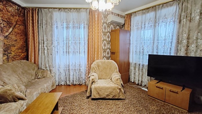 Квартира после капитального ремонта. В квартире есть все для комфортного проживания до 10 человек, 7 раздельных спальных мест (2+2+2+1,5+1+1+1). Квартира оснащена кондиционером, интернетом, большими смарт телевизорами (152 и 165 см), стиральной машиной, микроволновкой, эл. чайником, двухкамерным холодильником, большим морозильным шкафом и прочей бытовой техникой, комплектами постельного белья. В зале расположена лоджия, а в спальне французский балкон. Отлично подойдет для гостей города и командировочных.