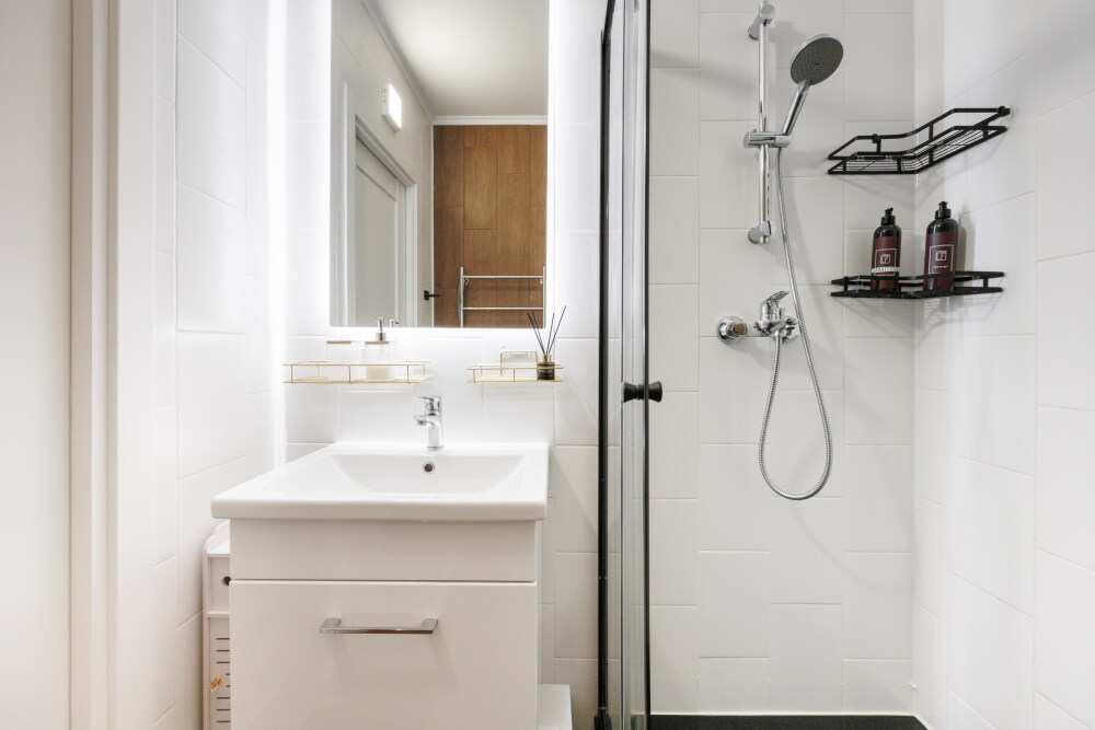 - отдельной ванной комнатой с душем, стиральной машиной и средствами гигиены,