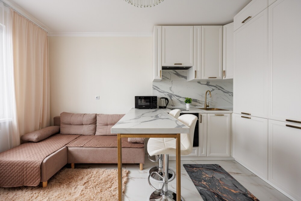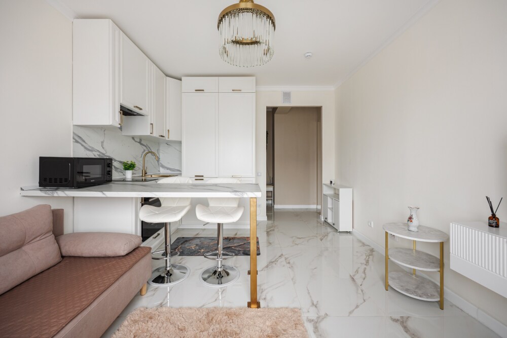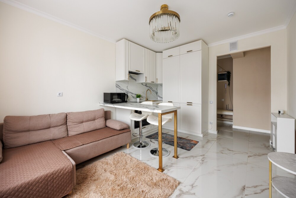 Апартаменты расположены в доме комфорт-класса. Каждое пространство продумано до мелочей: современная мебель, качественные материалы, тёплое освещение и акценты, которые создают атмосферу дома, а не гостиницы.