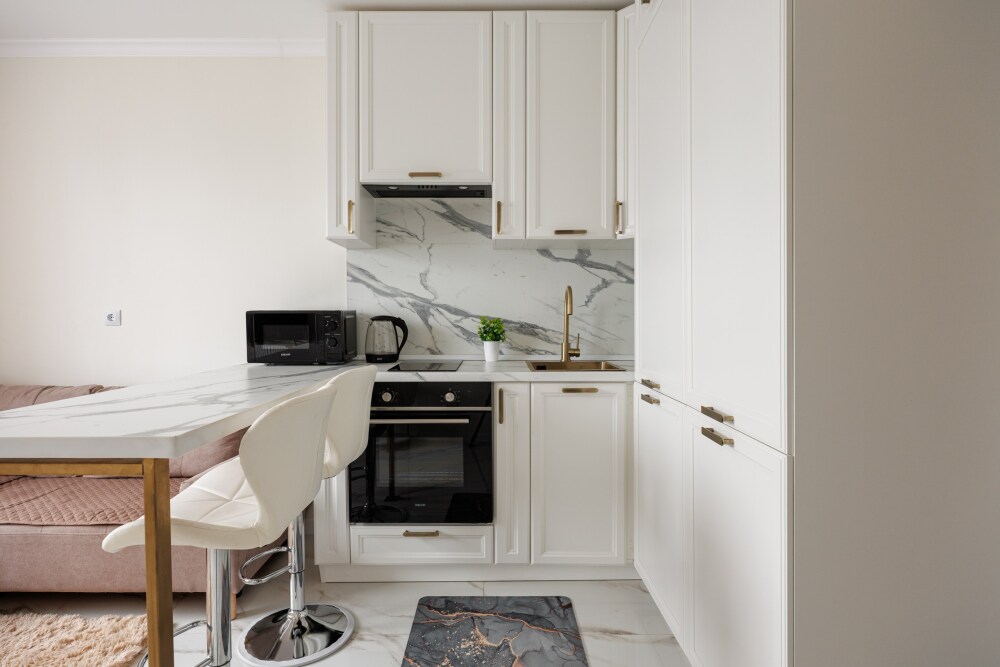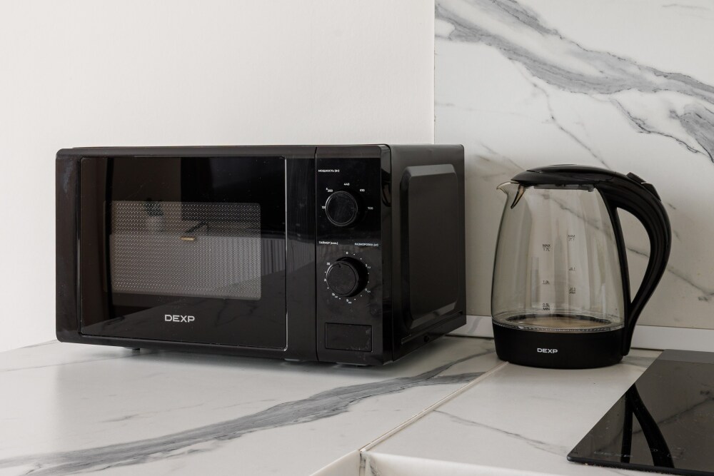- полноценной кухней с плитой, микроволновкой, холодильником и посудой,