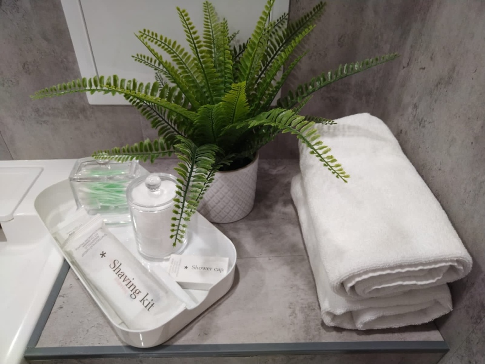В ванной комнате: гигиенические принадлежности (шампунь, гель для душа, мыло, ватные диски и палочки), фен. Стиральная машина, утюг, гладильная доска и другие приятные мелочи.