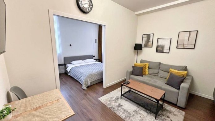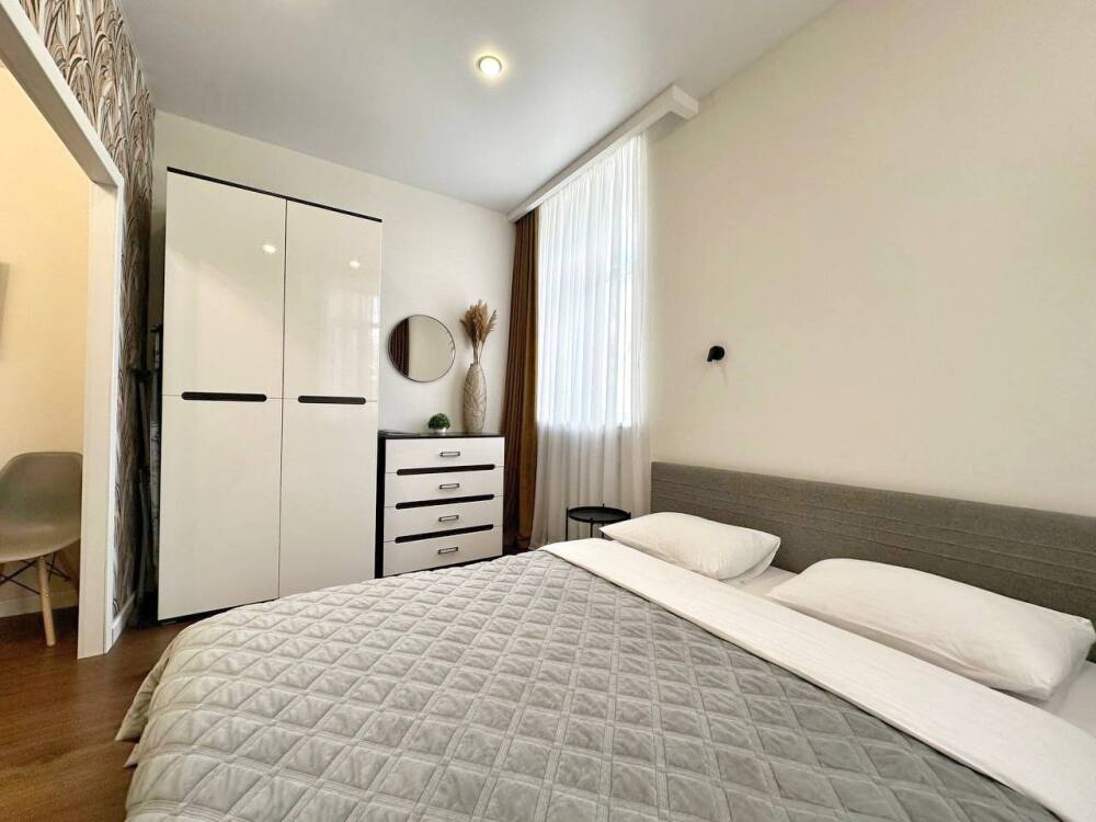 Мы приготовили для Вас удобную двуспальную кровать 160 см с ортопедическим матрасом в спальне, белоснежное постельное белье из высококачественного страйп-сатина и комплекты махровых полотенец, безлимитный wi-fi (подключенная скорость 200 Мбит/cек) и интерактивное TV WINK.
