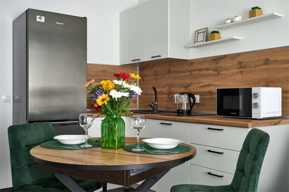 Квартира удивит вас своим необычным и современным стилем. Белые и изумрудные оттенки создают гармоничную симфонию из свежести и элегантности. Панорамная лоджия этой квартиры предлагает вам вид на уютный закрытый двор, где можно наслаждаться тишиной и спокойствием.