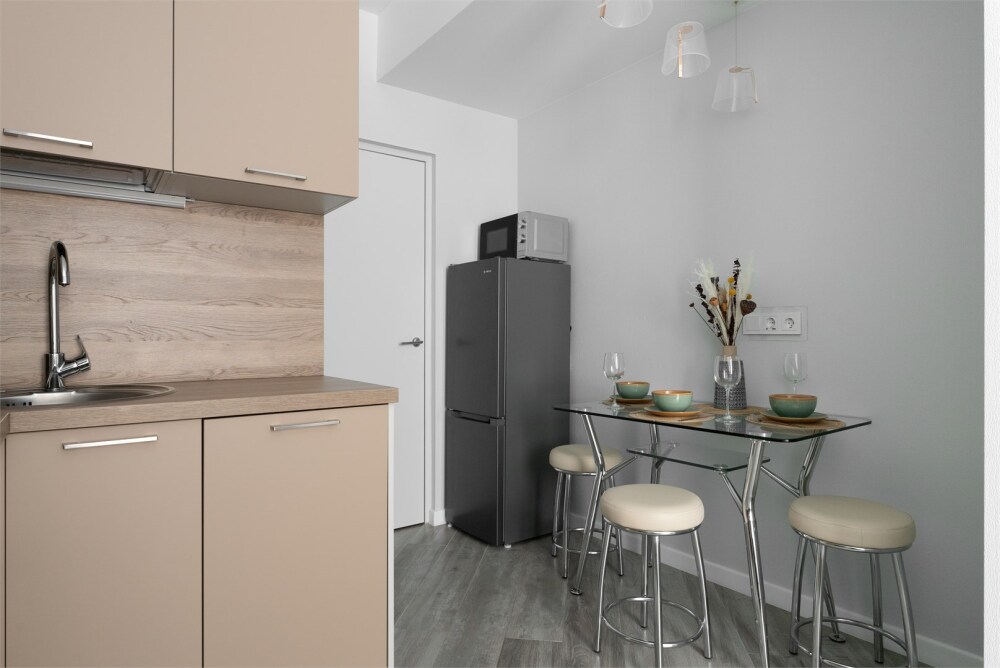 В апартаментах есть всё необходимое для комфортного проживания: рабочее пространство, смарт-ТВ, пол с подогревом. Эта квартира - идеальное место для тех, кто хочет почувствовать душу Петроградской стороны и насладиться ее неповторимым шармом.