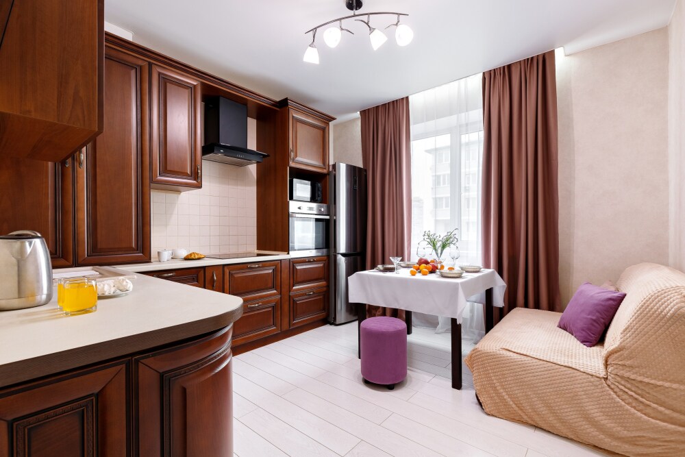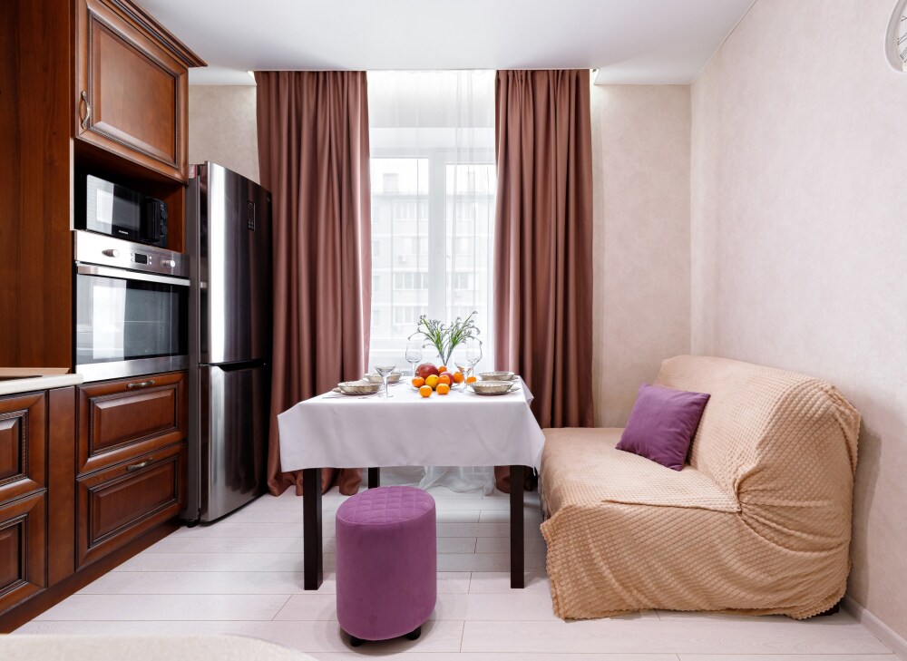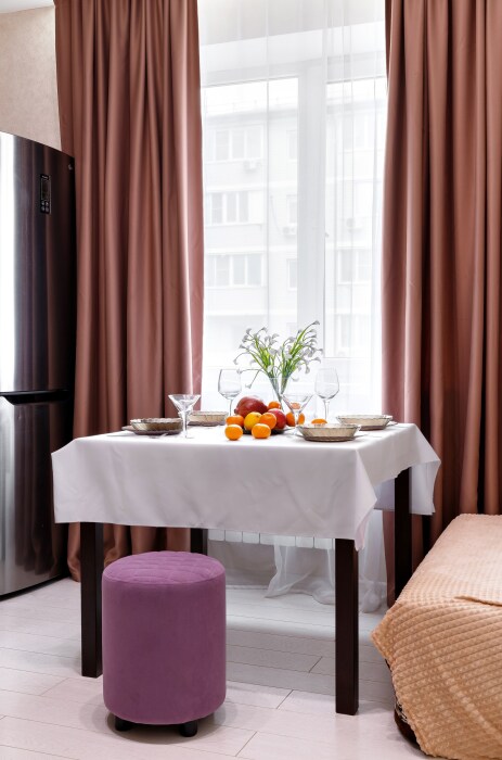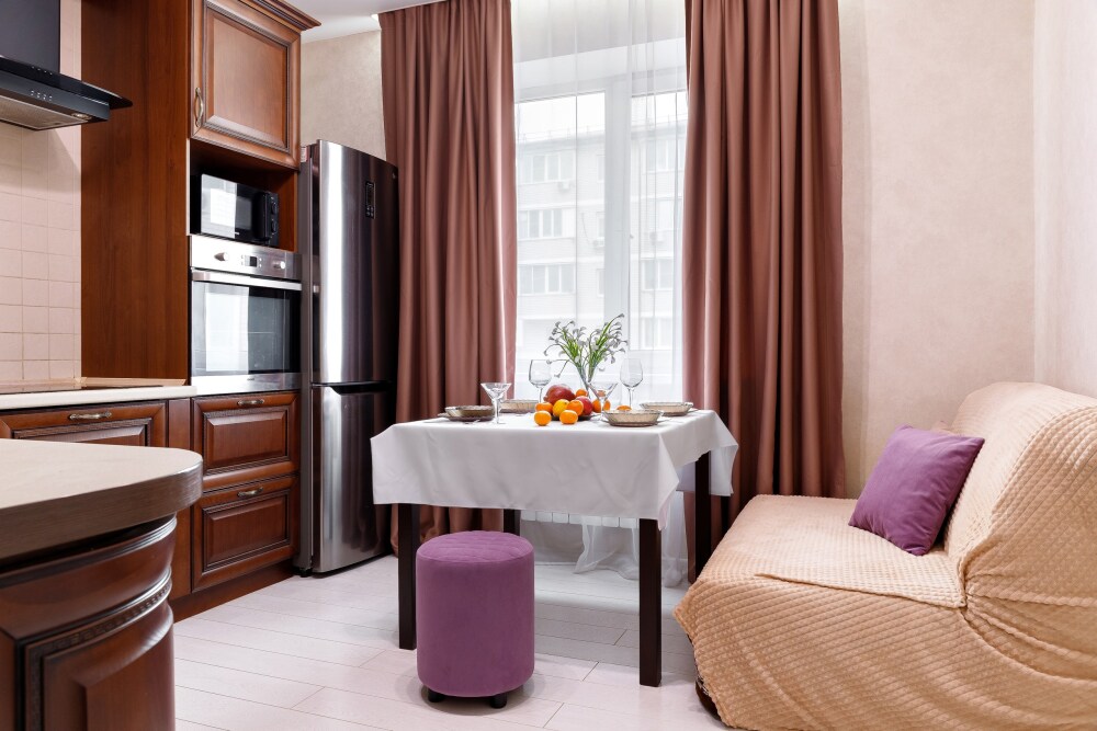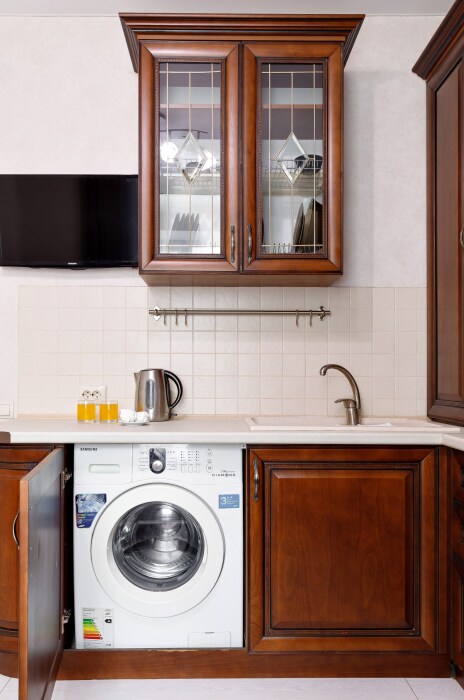 Квaртира укомплектованная бытовой техникой : холодильник, чайник, кондиционер, стиральная машина, телевизор, фен, утюг, гладильная доска.