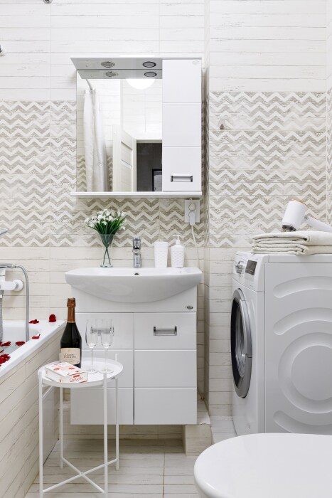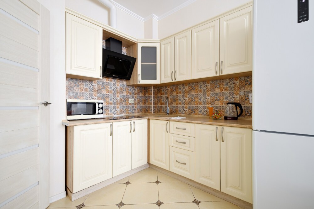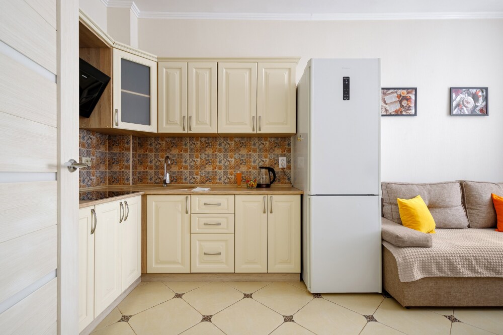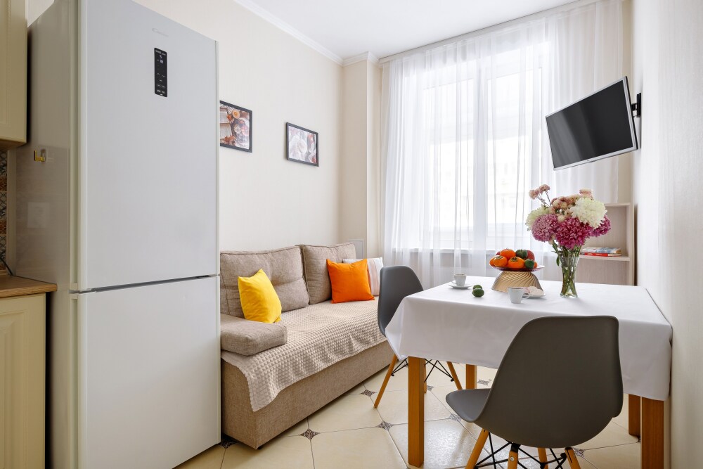 Квaртира укомплектованная бытовой техникой : холодильник, чайник, кондиционер, стиральная машина, телевизор, фен, утюг, гладильная доска.