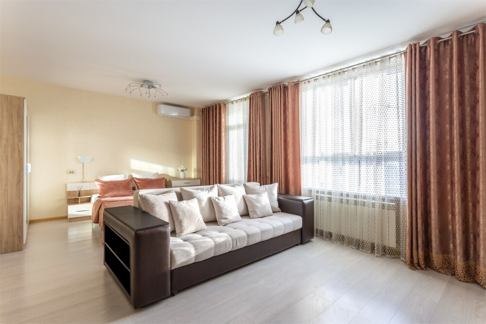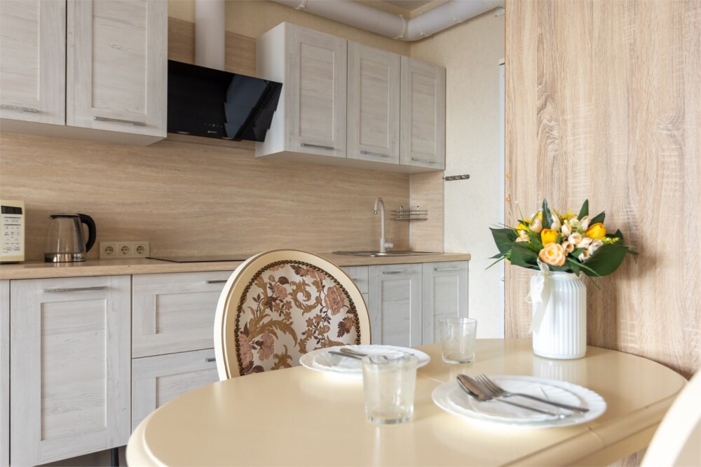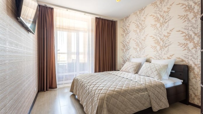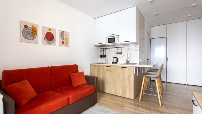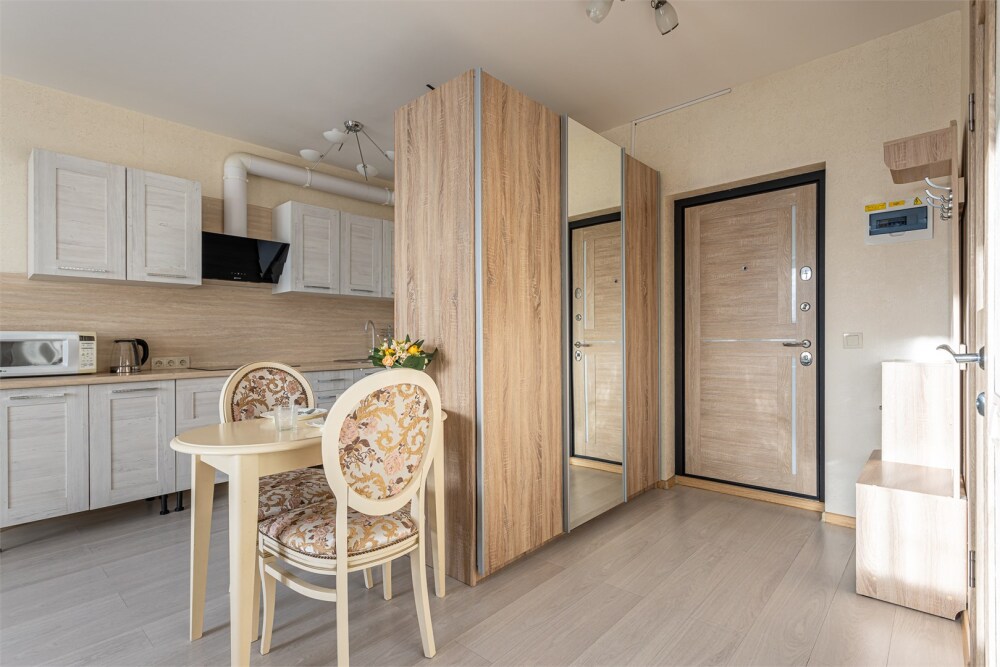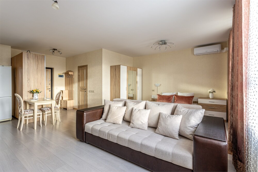 Двухкомнатная студия в бежевых тонах для спокойного отдыха в кругу семьи.