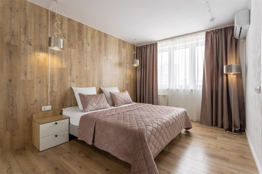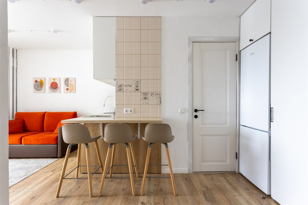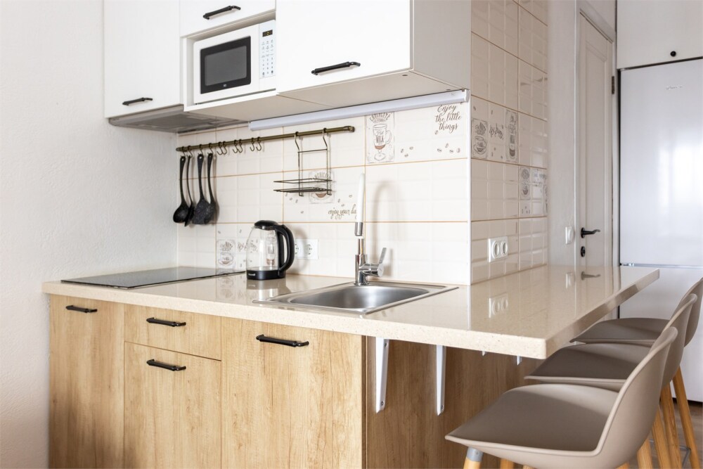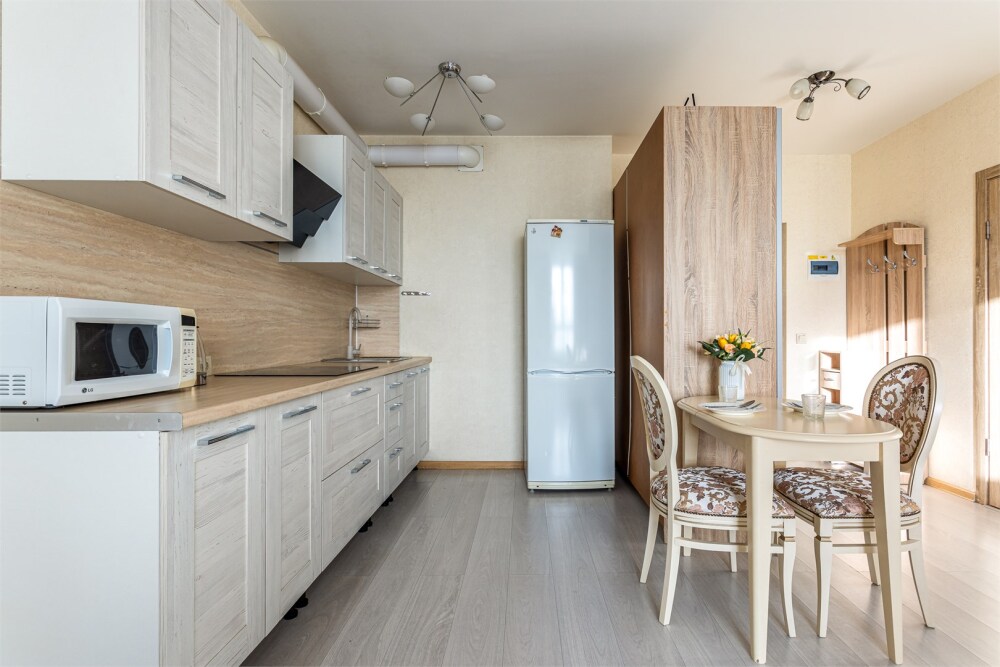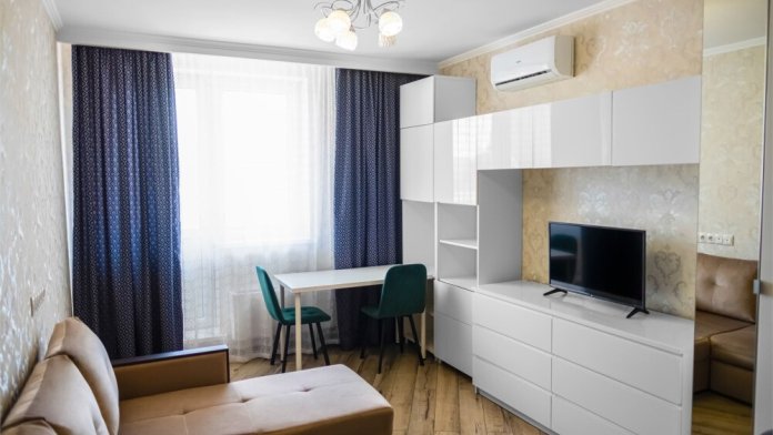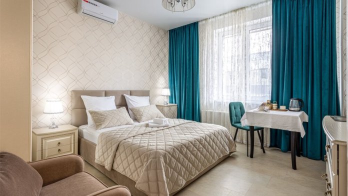 Двухкомнатная студия в бежевых тонах для спокойного отдыха в кругу семьи.