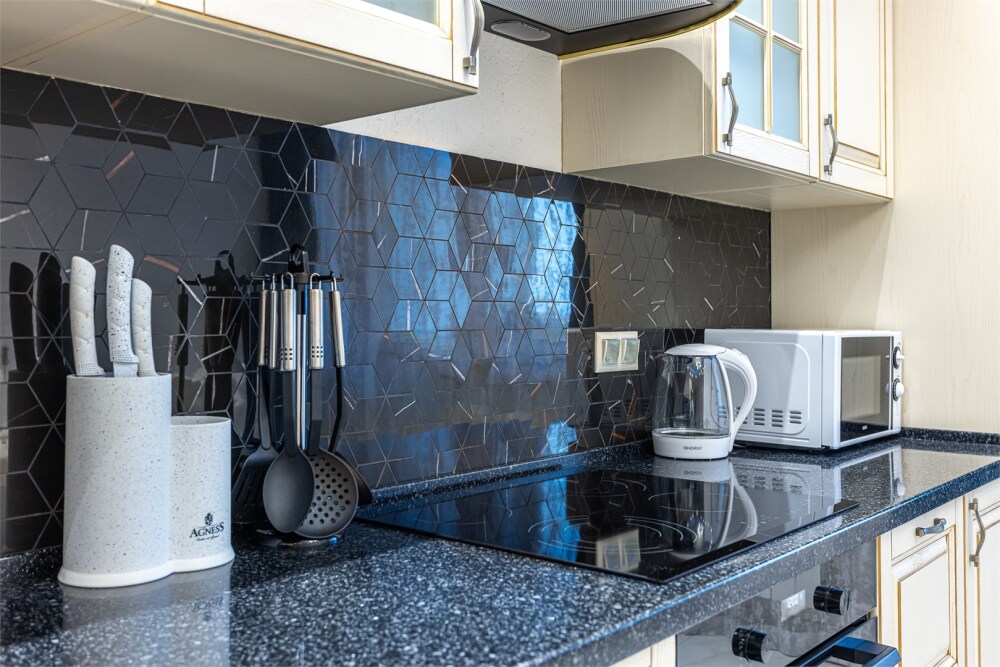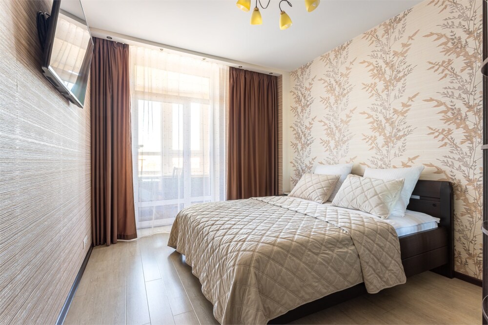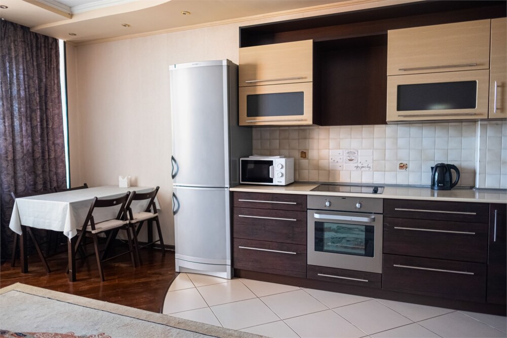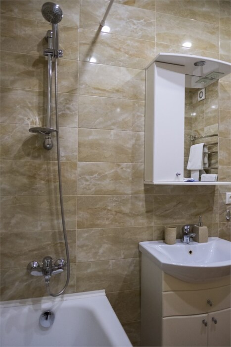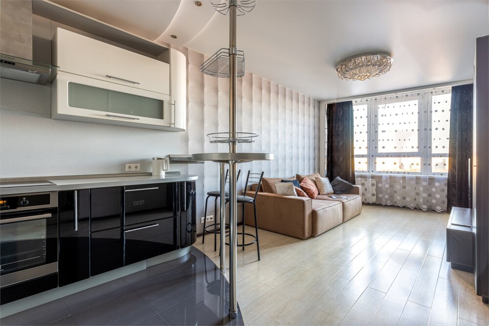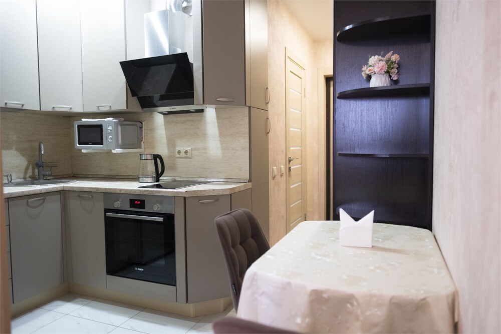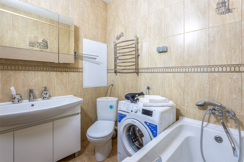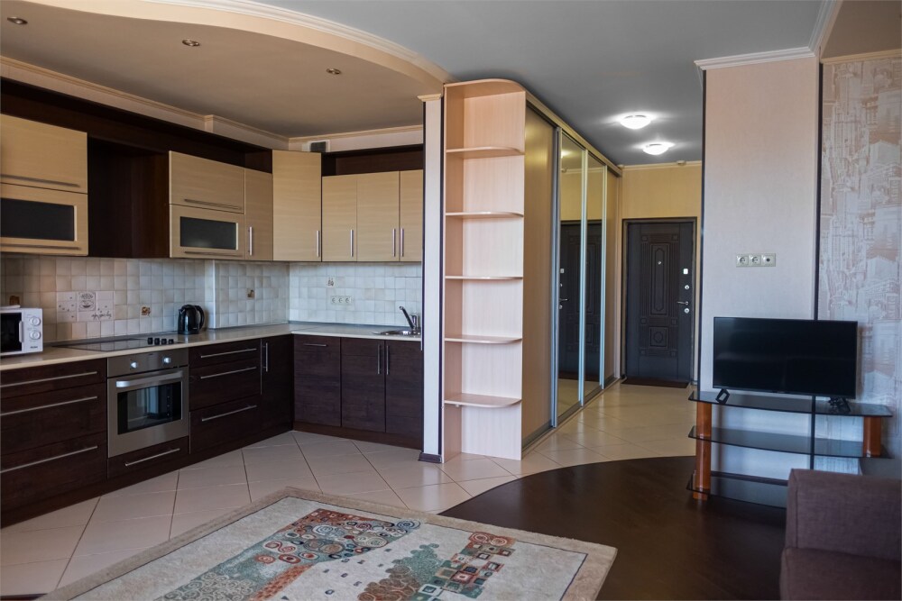 Апартаменты находятся в современном жилом районе, где есть все необходимое для комфортного проживания, как длительного, так и краткосрочного: банки, кафе, рестораны, супермаркеты, салоны красоты, торговый центр.