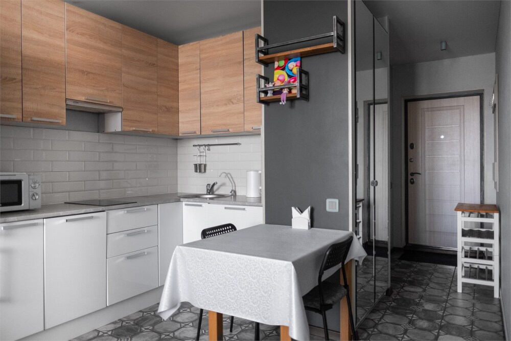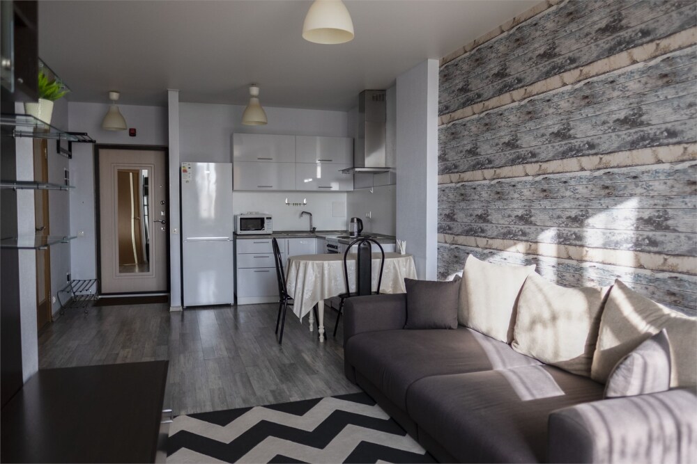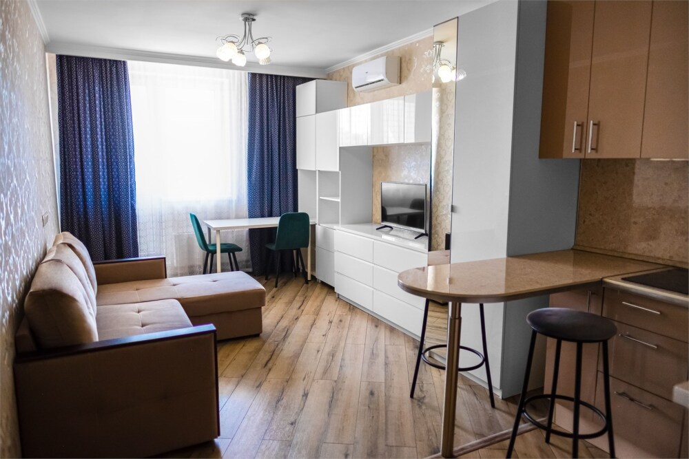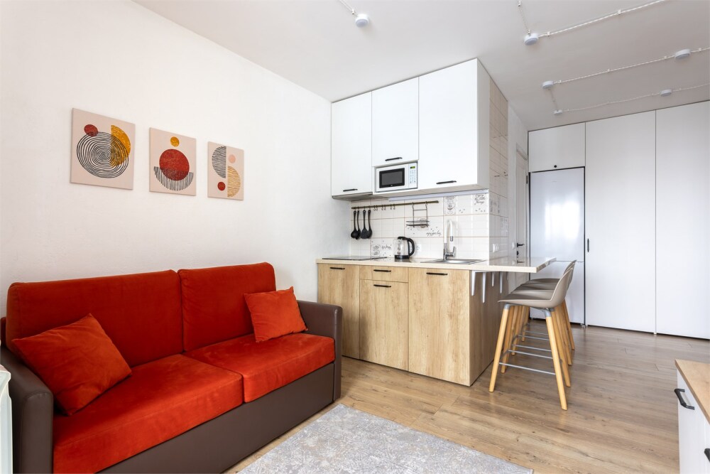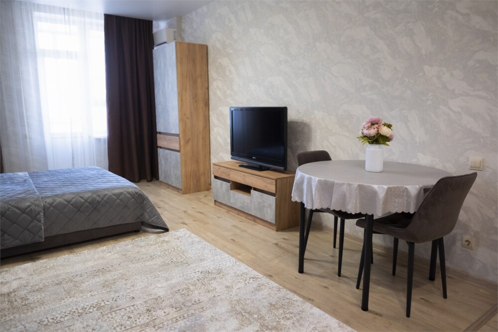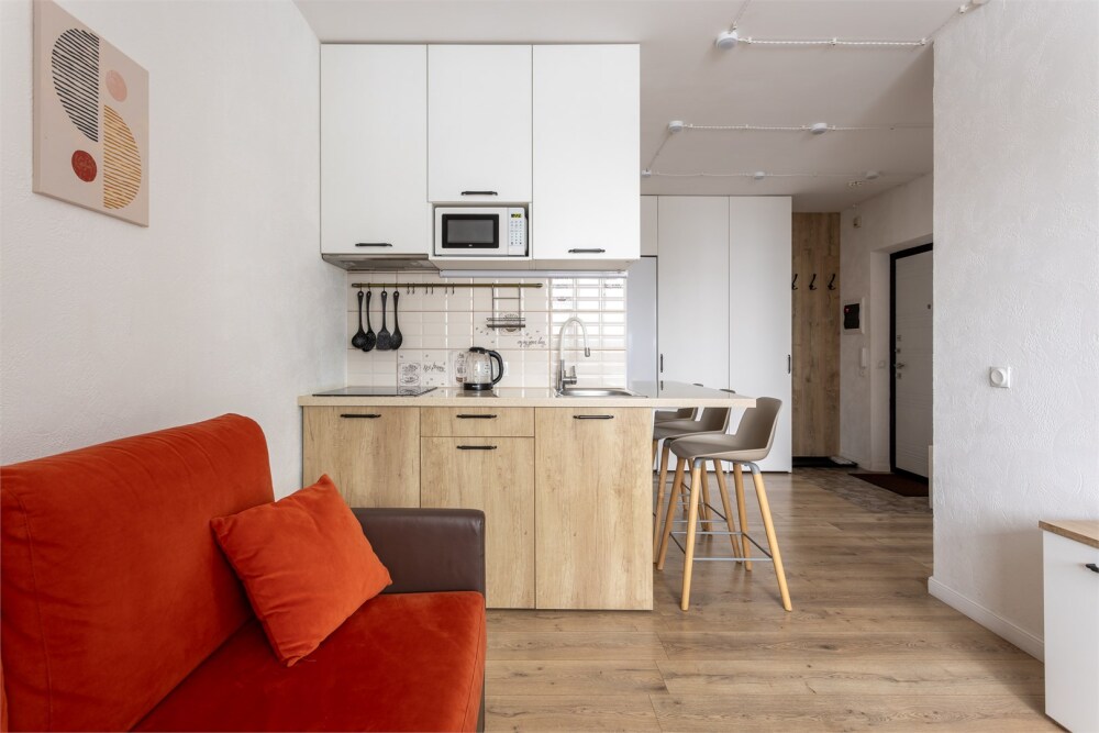 Светлая и функциональная квартира-студия для уединения и отдыха.