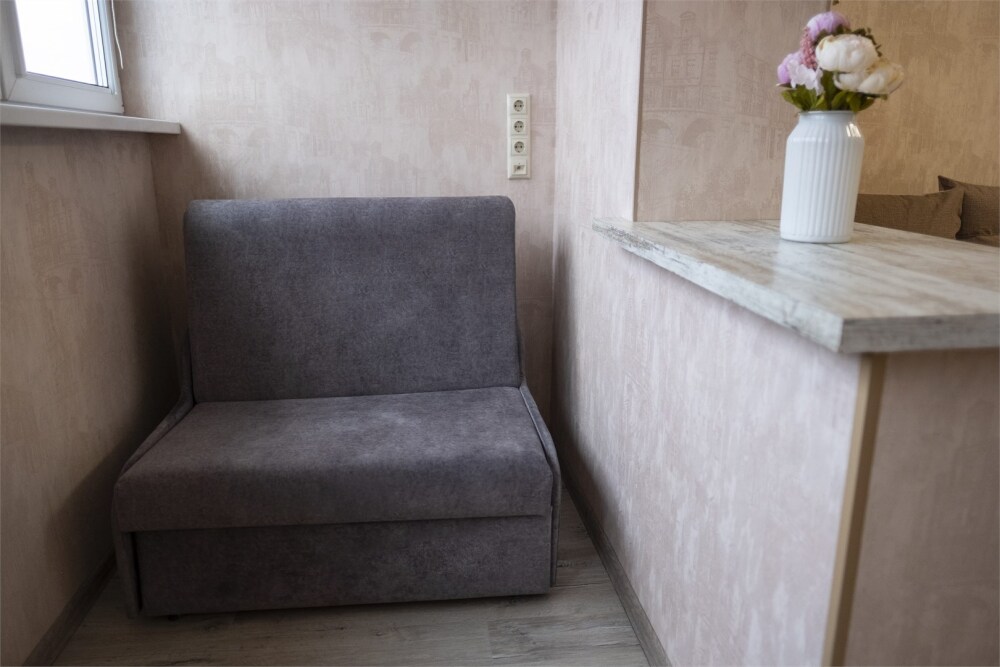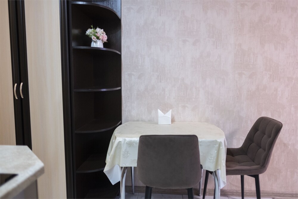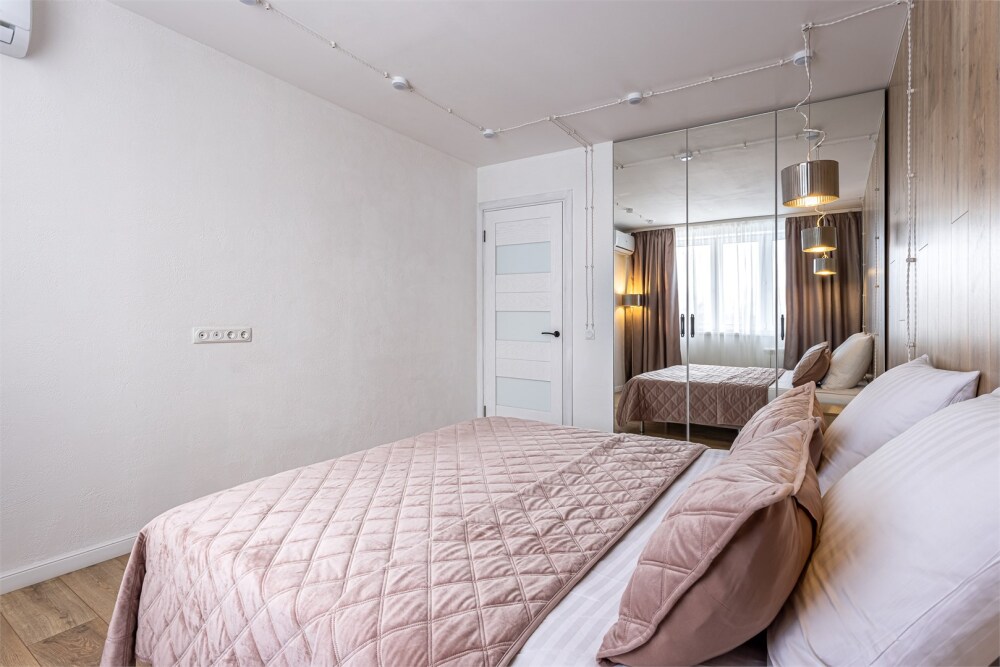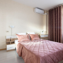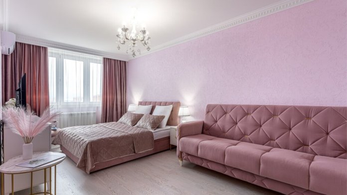 Светлая уютная квартира в нежно розовых оттенках прекрасно подойдет для одиночного размещения.