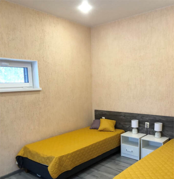 - Кровать в спальне в сдвинутом состоянии как двуспальная. Можно раздвинуть кровати по запросу.