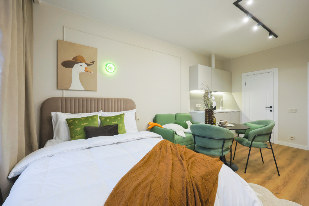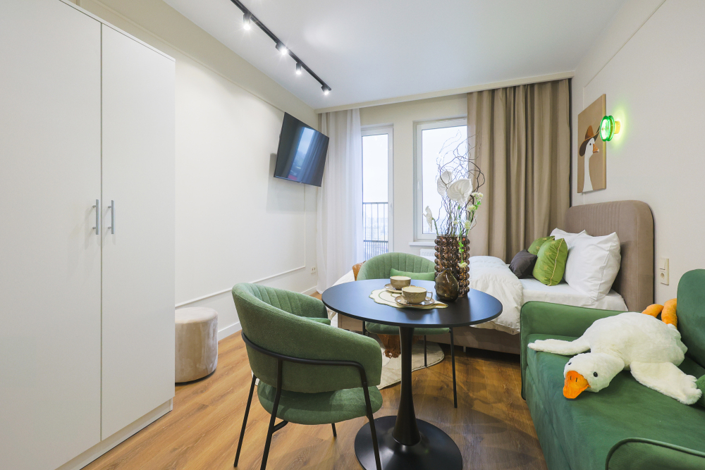 Чистая, уютная и новая студия, откуда не хочется уезжать. Интерьер продуман до мелочей.