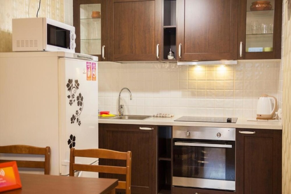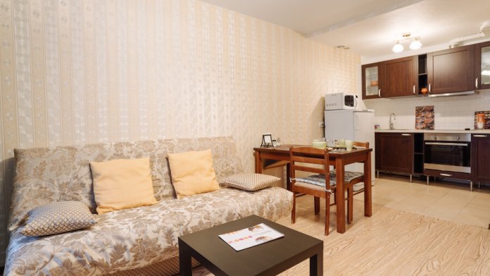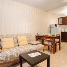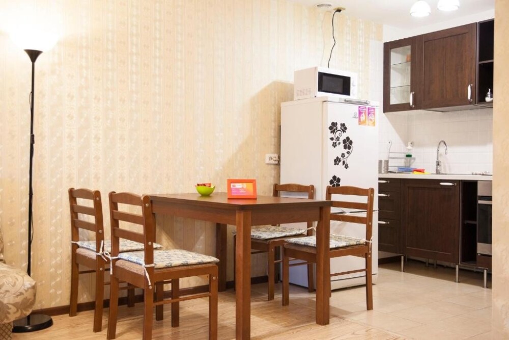 Апартаменты оборудованы всей необходимой техникой, мебелью и посудой для комфортного проживания, свежее белье и махровые полотенца сделают ваше пребывание в наших апартаментах еще приятнее, а высокоскоростной Wi-fi и спутниковое телевидение позволят вам в любое время оставаться на связи.