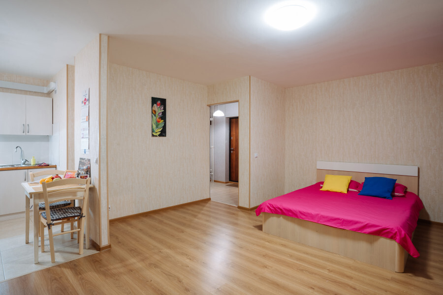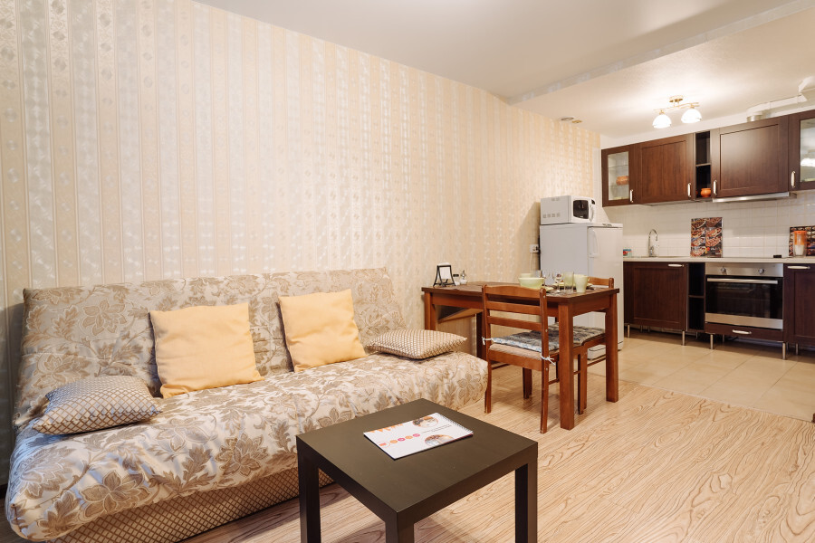 Уютные однокомнатные с евроремонтом. Апартаменты включают в себя клининг, современную мебель, бытовую технику, свежее бельё и посуду. Гигиенические принадлежности и полотенца предоставляются каждому гостю. Апартаменты расположены рядом с крупным торговым центром, рядом парк и речка. Рассчитаны для 4-х гостей.