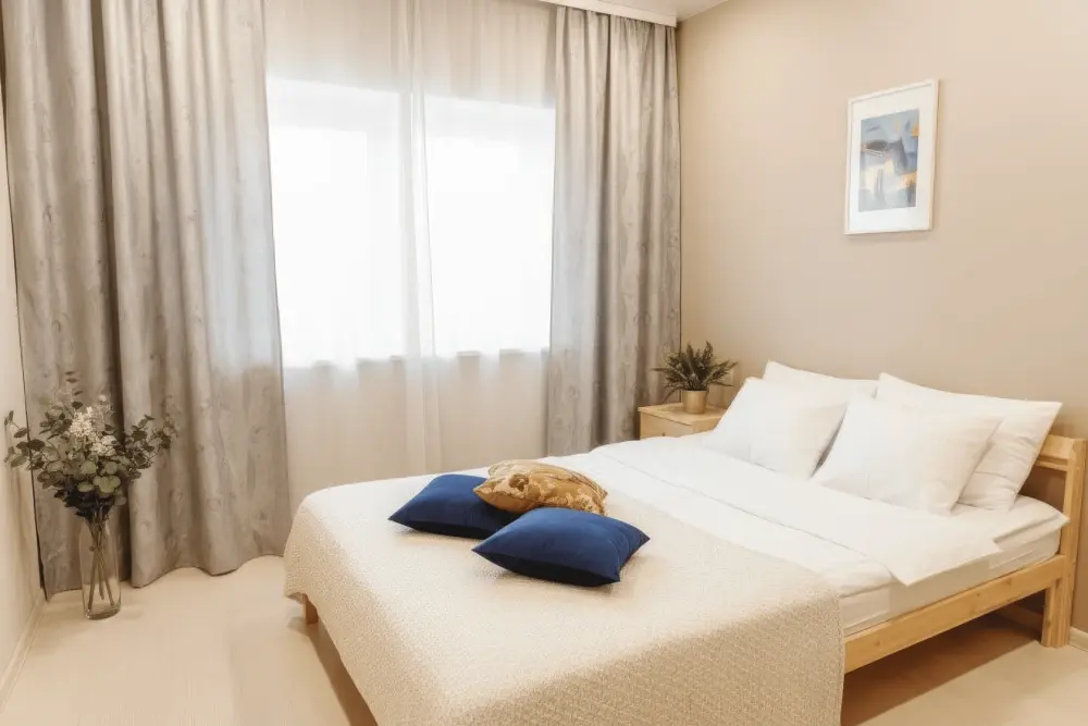 Апартаменты включают в себя: клининг, современную мебель, бытовую технику, свежее бельё и посуду. Гигиенические принадлежности и полотенца предоставляются каждому гостю.