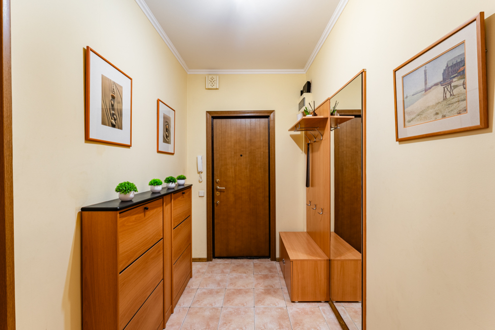 Полная готовность к проживанию: в квартире выполнен ремонт и есть вся необходимая техника: холодильник, стиральная и посудомоечная машина, микроволновая печь, фен, утюг, гладильная доска.