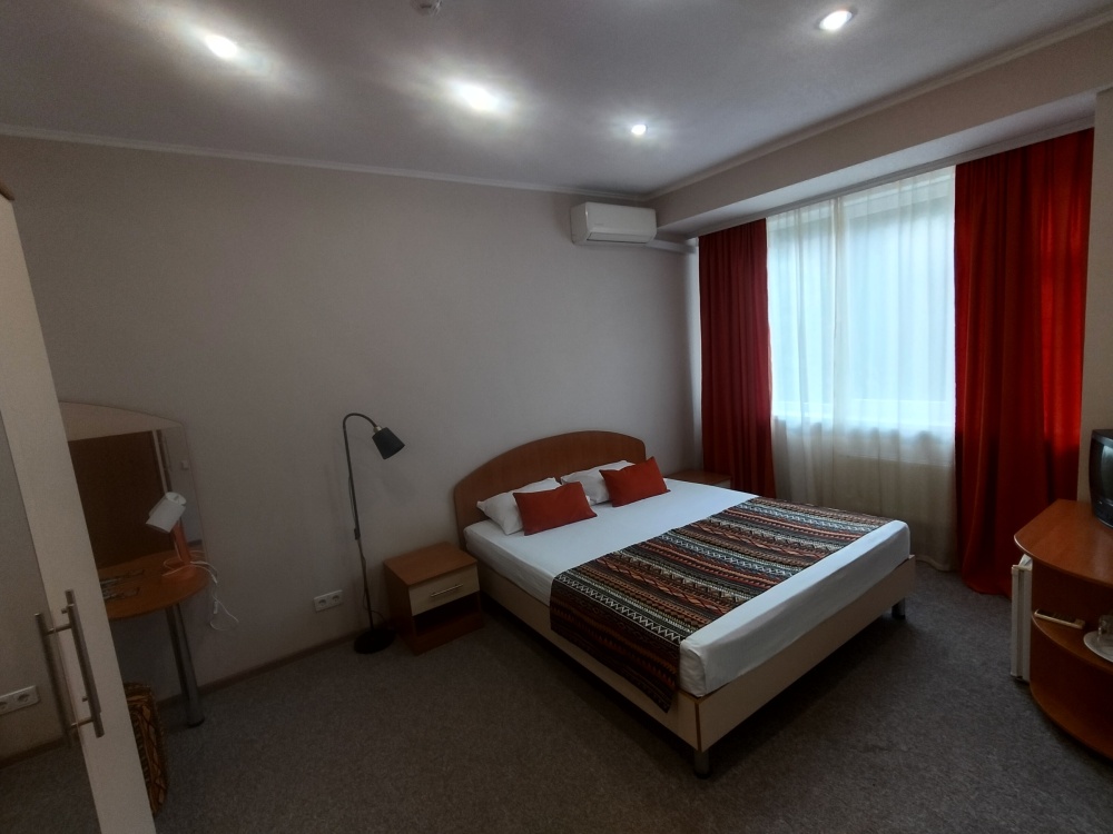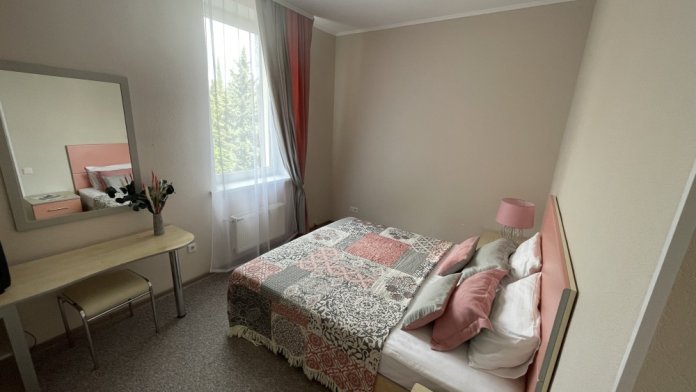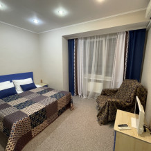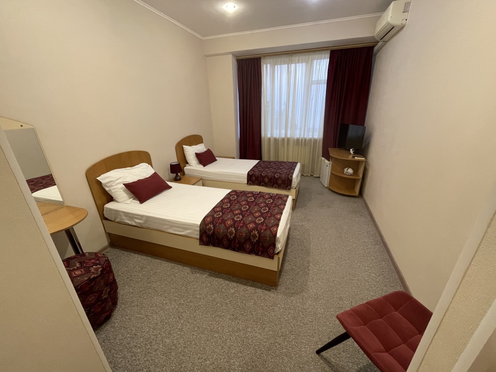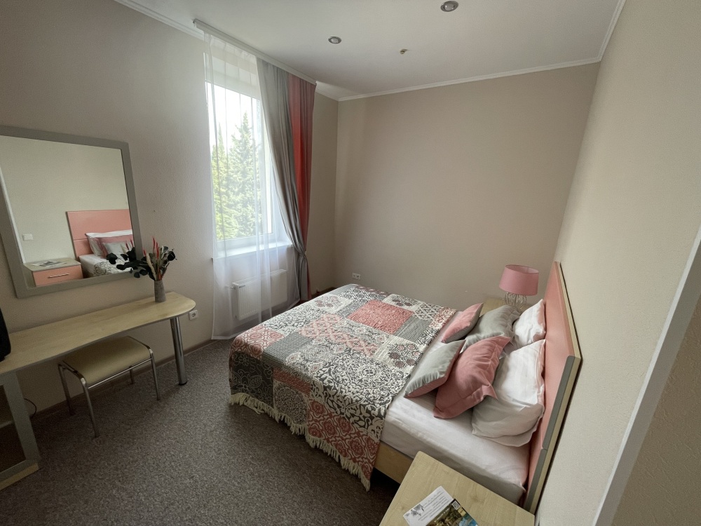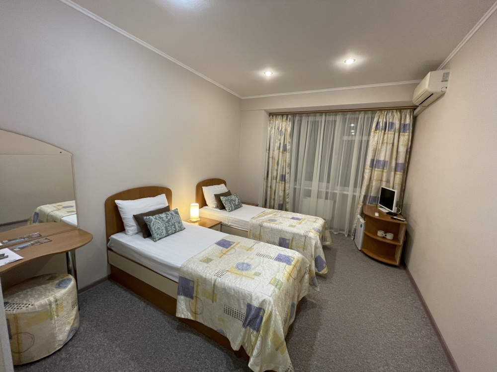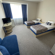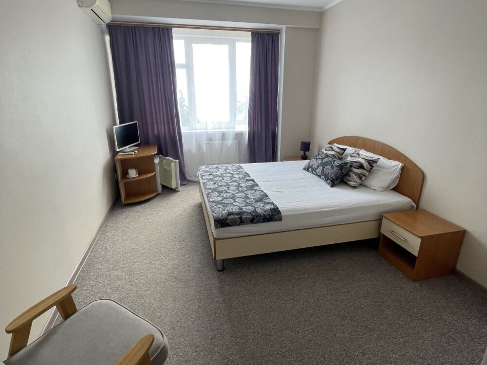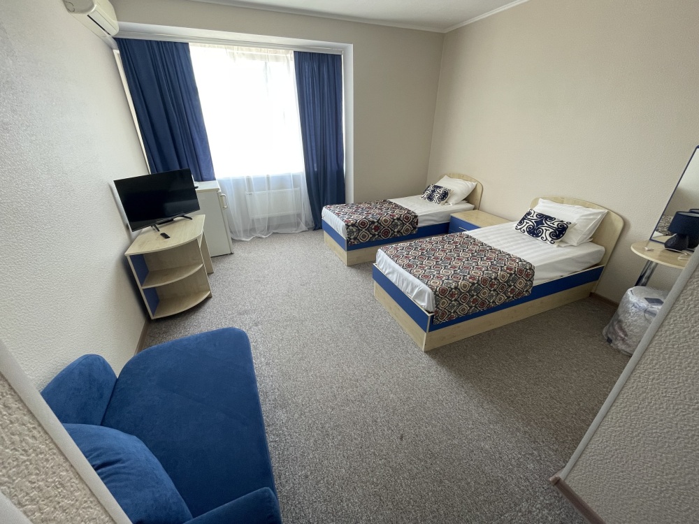 Комфортабельный однокомнатный номер с одной двухспальной кроватью или двумя односпальными. Номер с видом на море и парк отеля. В номере есть кресло, столик для телевизора, столик с зеркалом, бельевой шкаф-прихожая, кондиционер, прикроватные тумбочки и светильники. Полноценный санузел, гигиенические принадлежности. В коридоре кулер с горячей и охлажденной водой, микроволновая печь, гладильная доска и утюг.