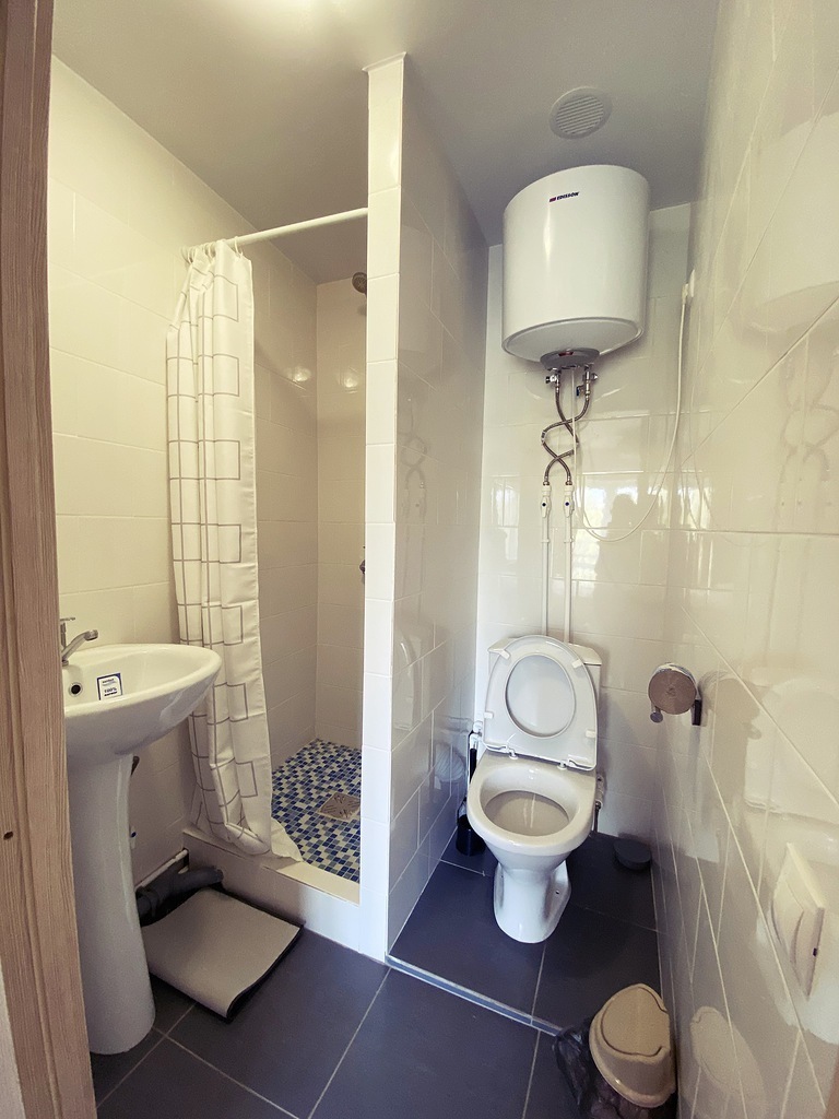 В самих апартаментах есть все необходимое для проживания. Балкон с видом на город.