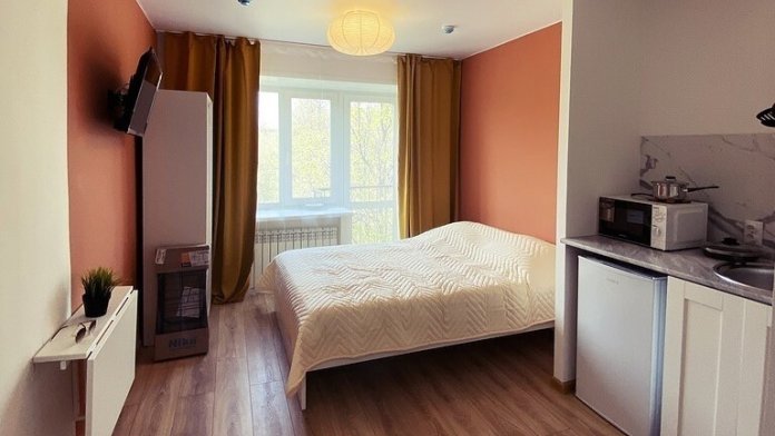 Светлая, уютная студия на 2 персоны. Парковка автомобиля возможна на улице.