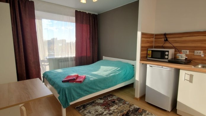 В самих апартаментах есть все необходимое для проживания. Балкон с видом на город.