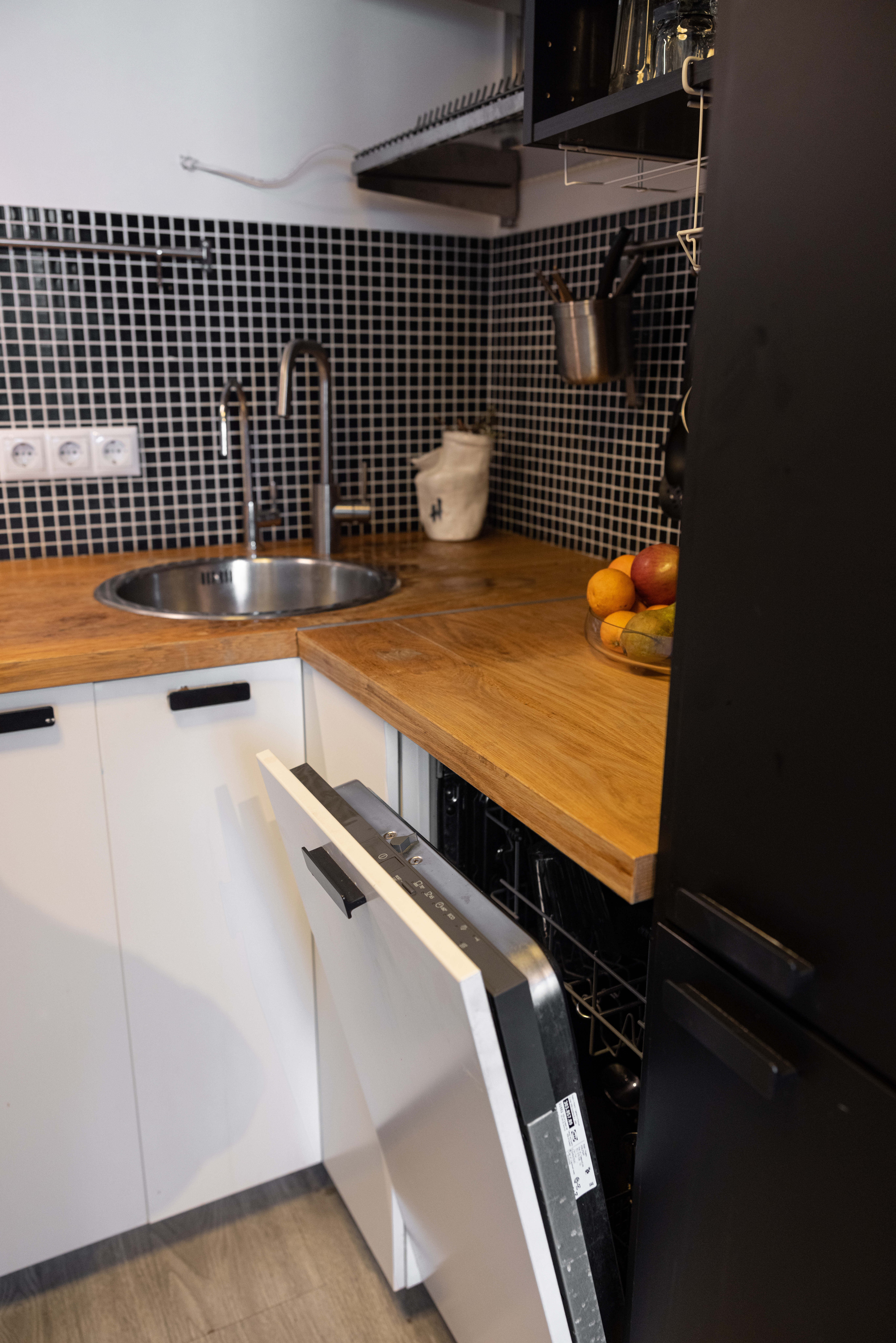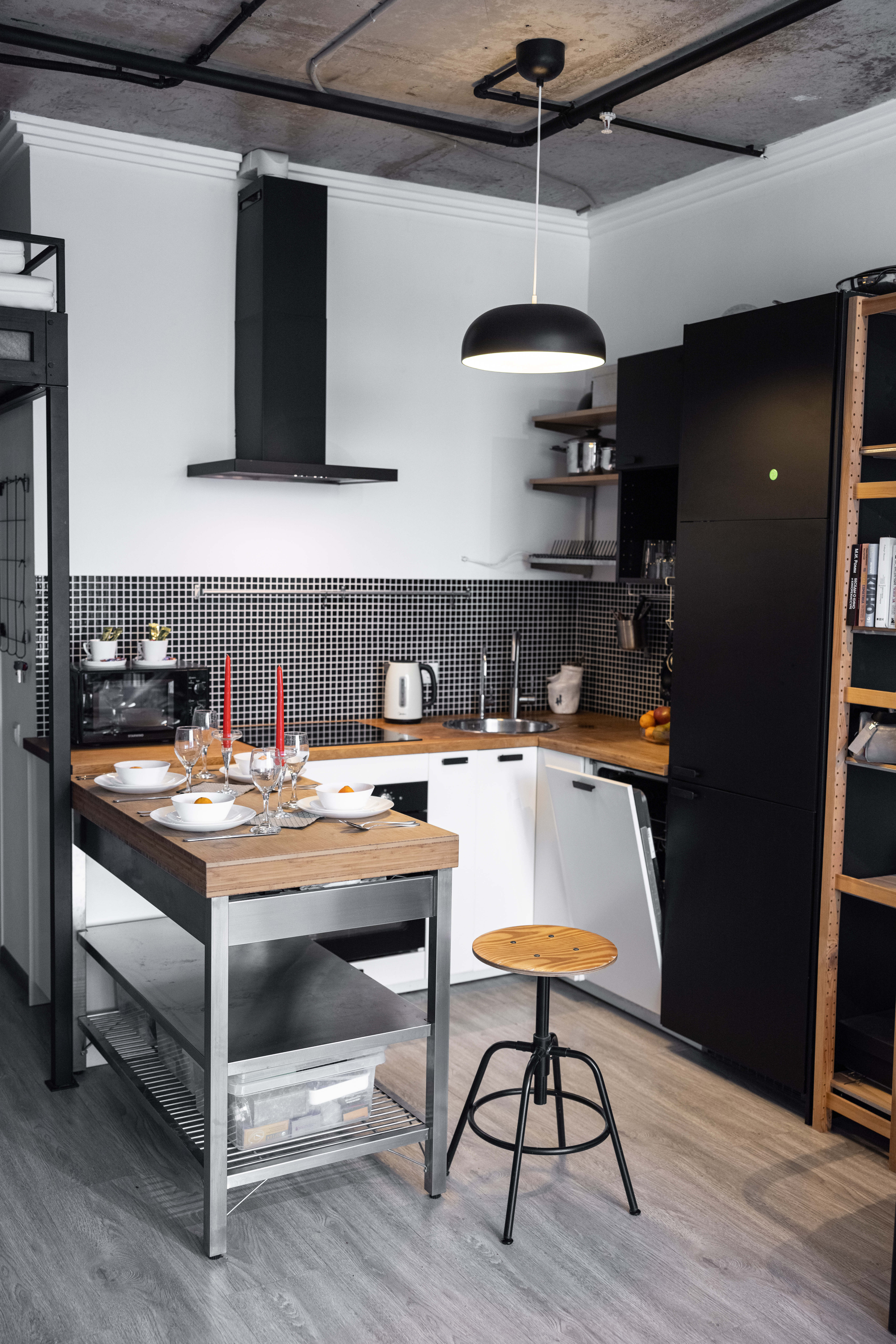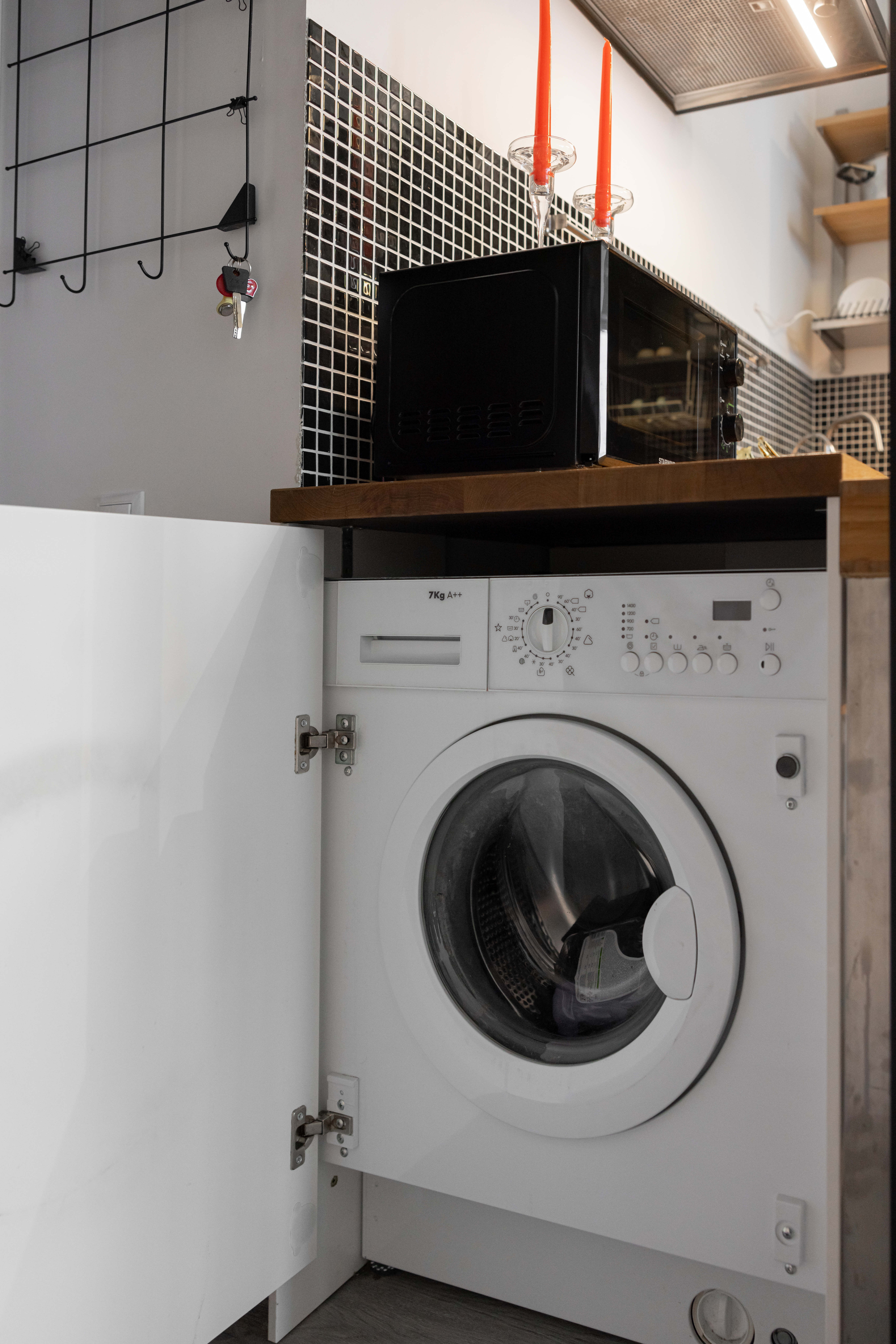 - На кухне вся техника: чайник, СВЧ, плита, духовка, холодильник.