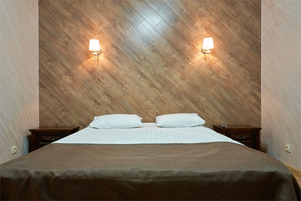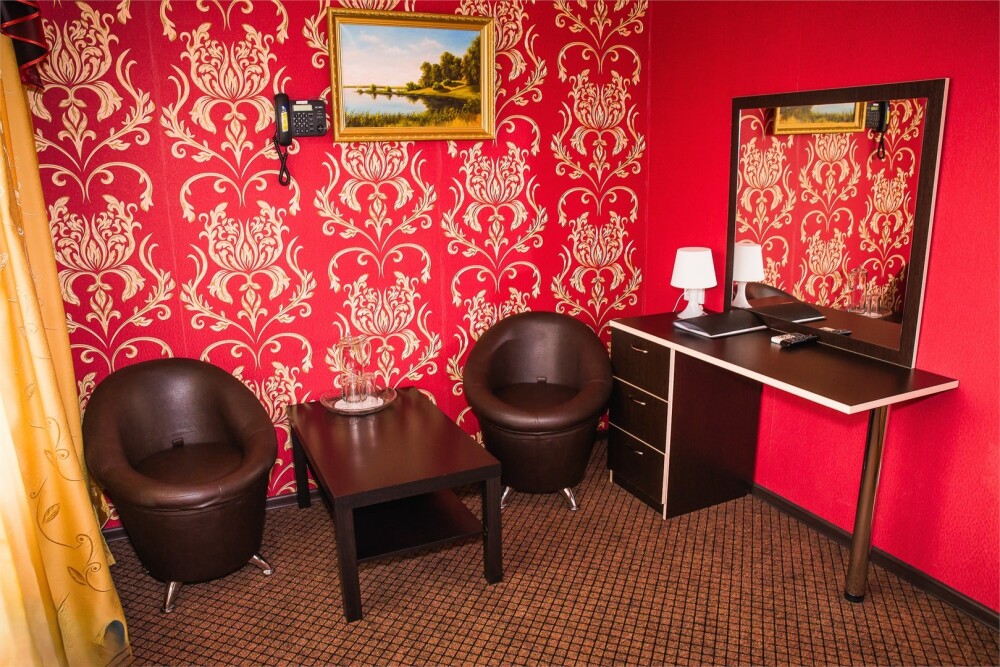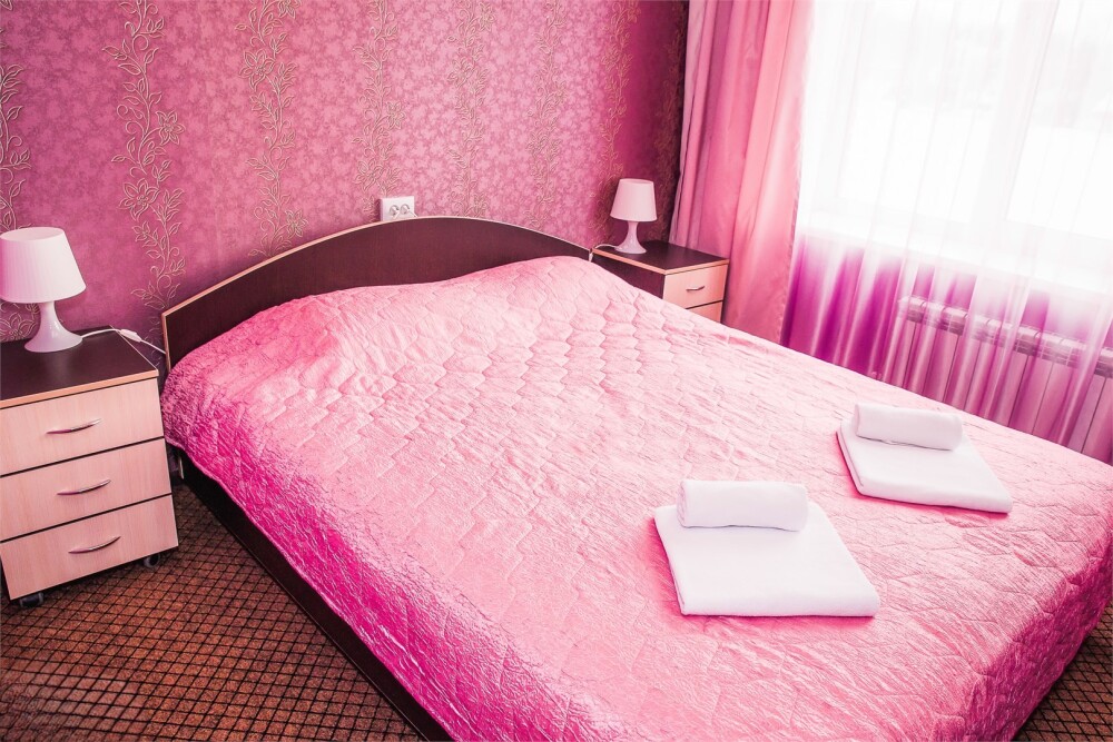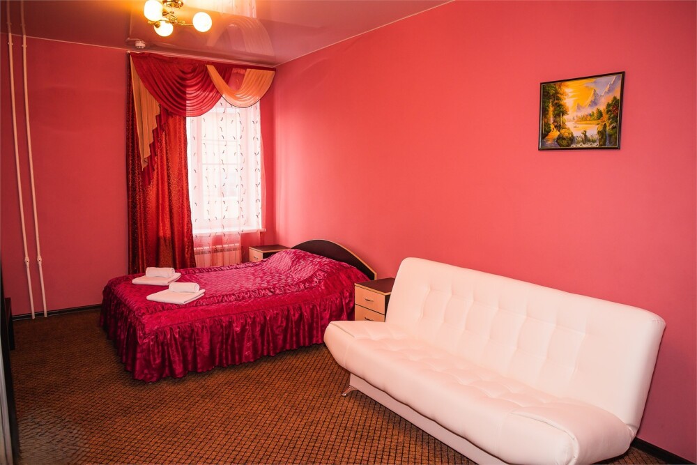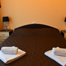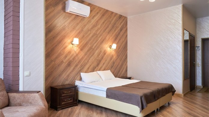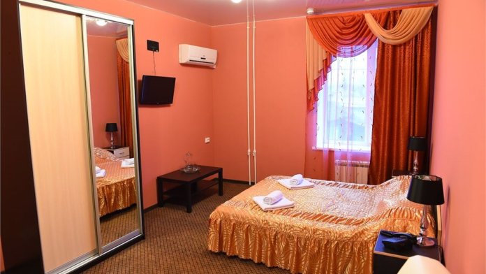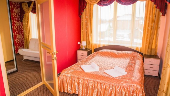 Двухкомнатный номер. В спальне: двуспальная кровать, прикроватные тумбочки, прикроватные светильники, туалетный столик, журнальный столик, два пуфа, кондиционер. В гостинной: удобный диван, журнальный столик, шкаф-купе, телевизор, телефон, wi-fi. Санузел, душевая кабина, туалетные принадлежности, банные принадлежности.
