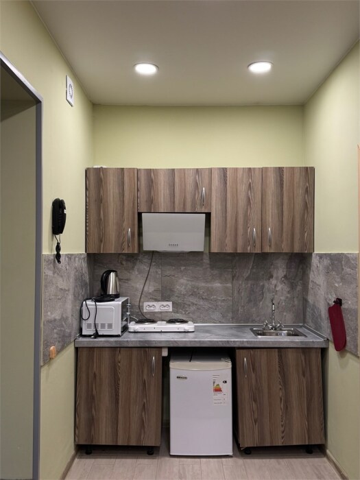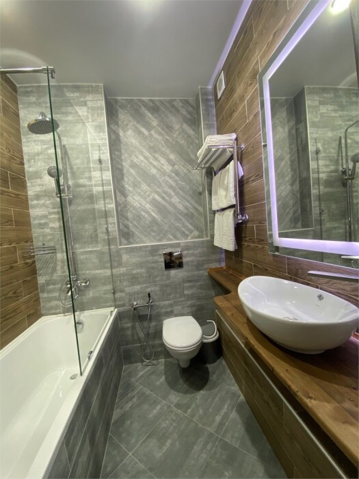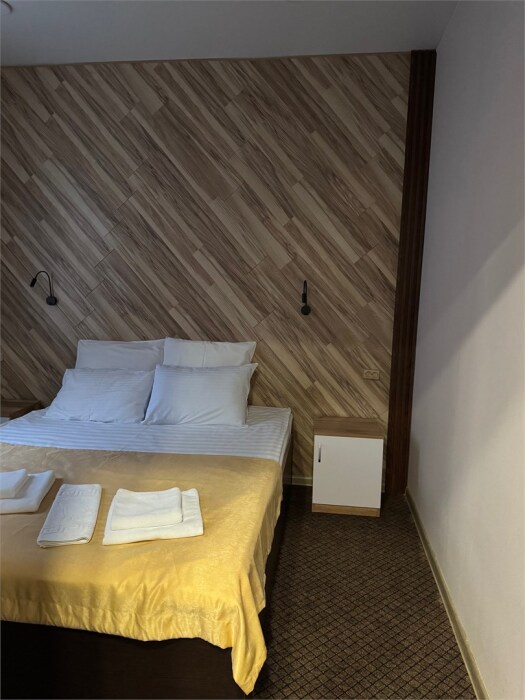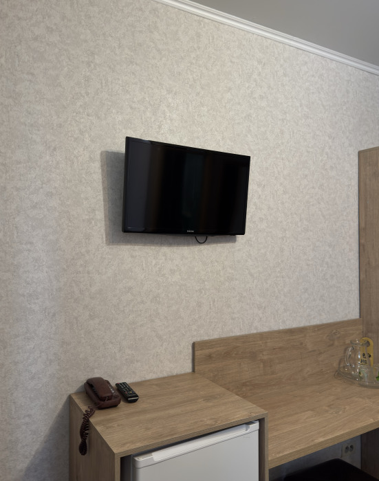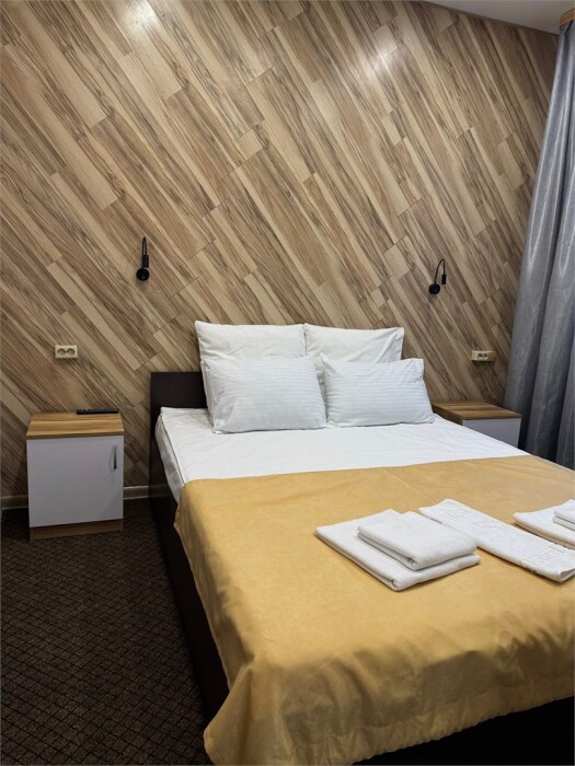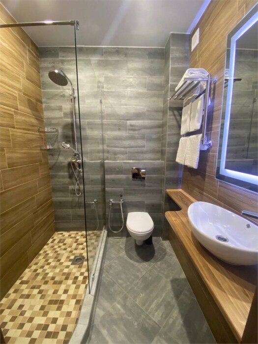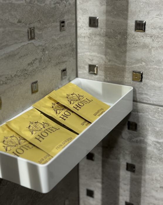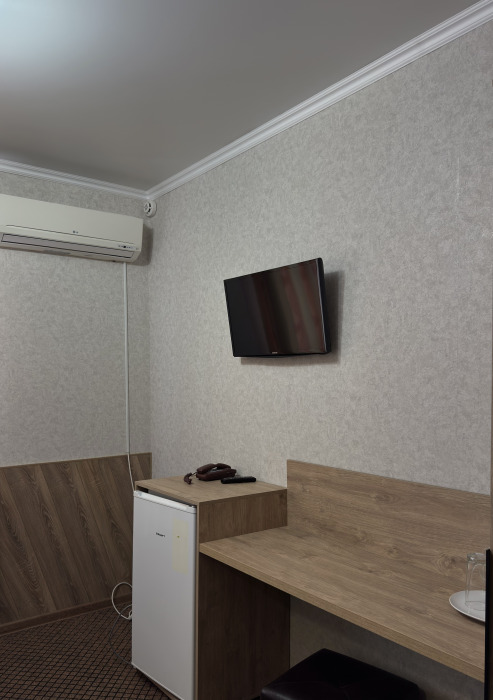 В номере: прикроватная тумбочка, прикроватные светильники, шкаф, журнальный столик, кондиционер, телефон, телевизор, кабельное телевидение, wi-fi. Санузел, Душевая кабина, туалетные принадлежности, банные принадлежности.