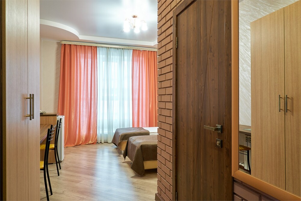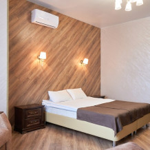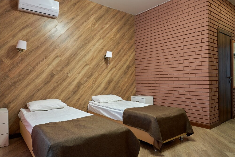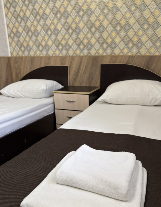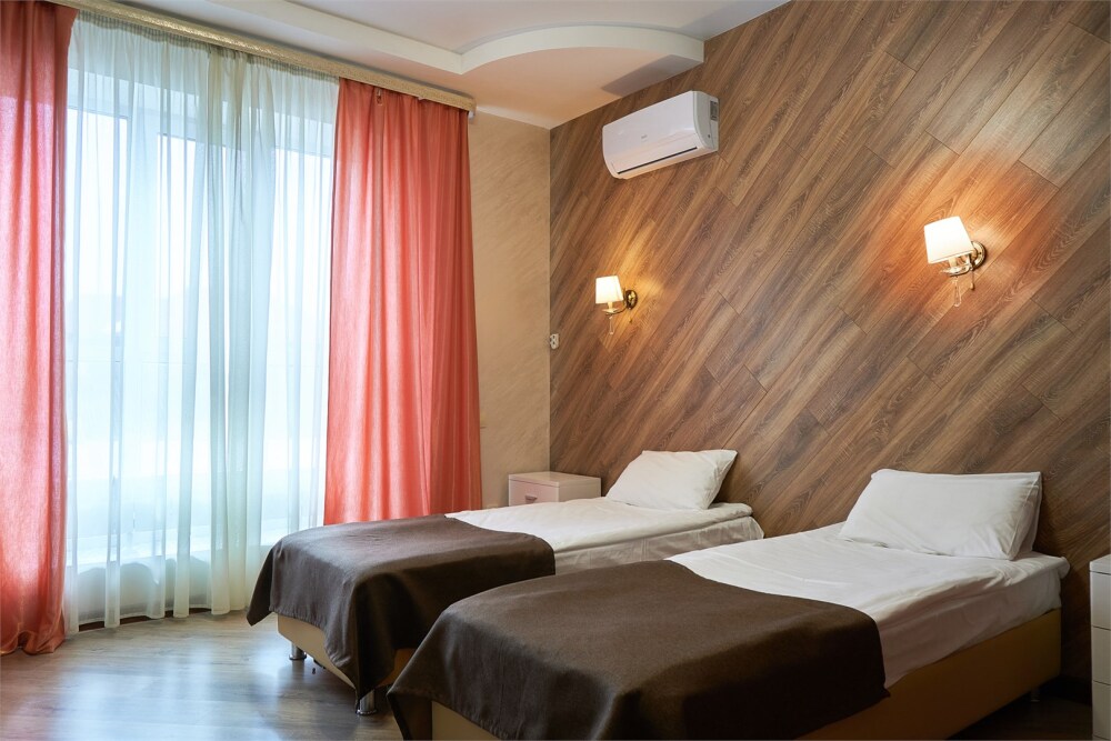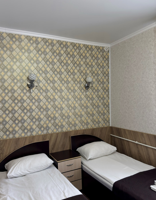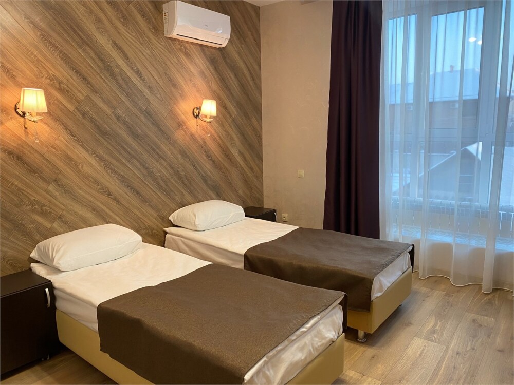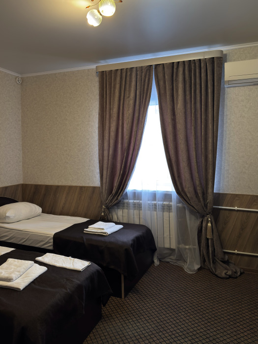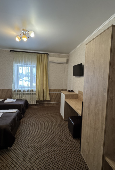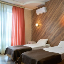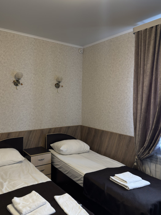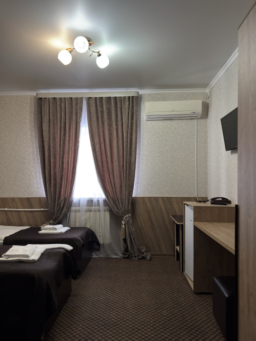 В номере: Две полутороспальные кровати, прикроватная тумбочка, прикроватные светильники, шкаф, журнальный столик, кондиционер, телефон, кабельное телевидение, wi-fi. Санузел, Душевая кабина, туалетные принадлежности, банные принадлежности.
