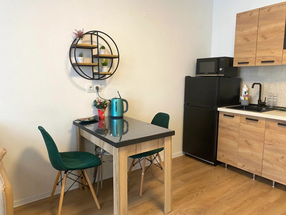 - Оборудованная кухня (холодильник, плита, микроволновая печь, электрочайник, тостер)