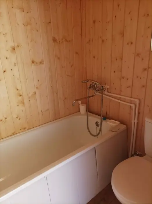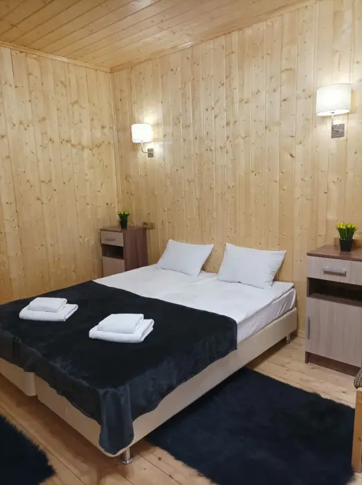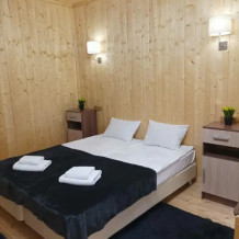 Двухспальная кровать, которую при желании можно разделить на две односпальные. Есть номера с дополнительным третьим спальным местом. Свой отдельный совмещённый санузел. Свой дворик с беседками и мангалом.