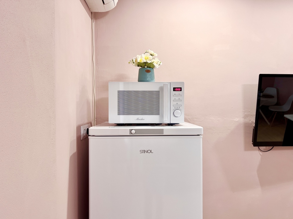 - Наши гости могут готовить на полностью оборудованной кухне с бытовой техникой и посудой, есть плита, электрический чайник, микроволновая печь и холодильник;