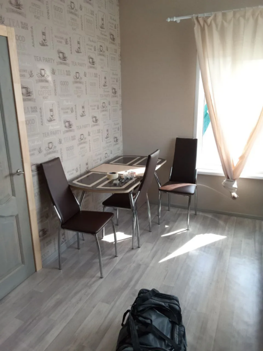 В гостиной: дивaн, куxоннaя мебeль, поcудa.