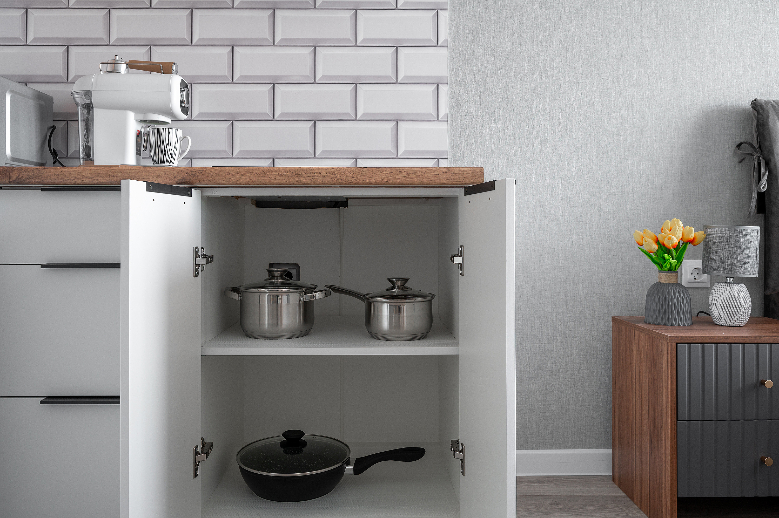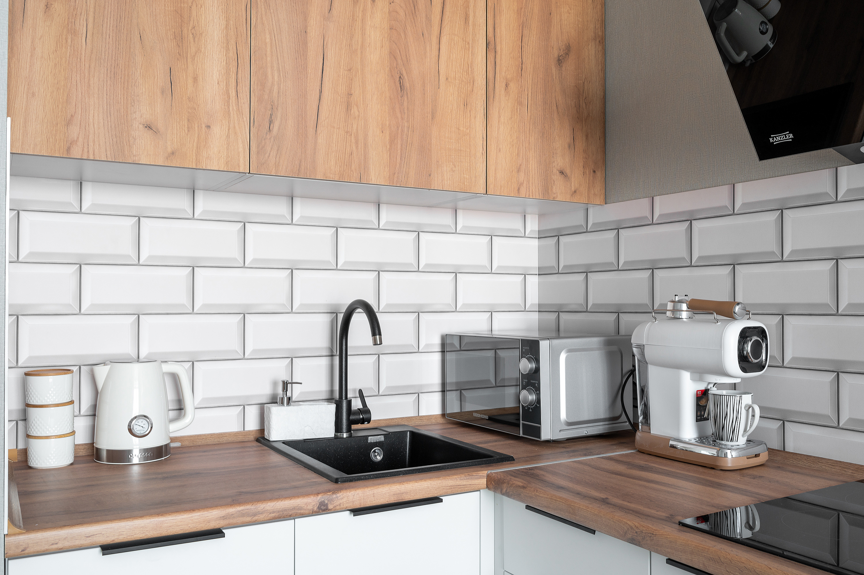 Кухня: Вся техника (микроволновка, варочная панель, чайник), посуда, кофе и чай «в подарок».