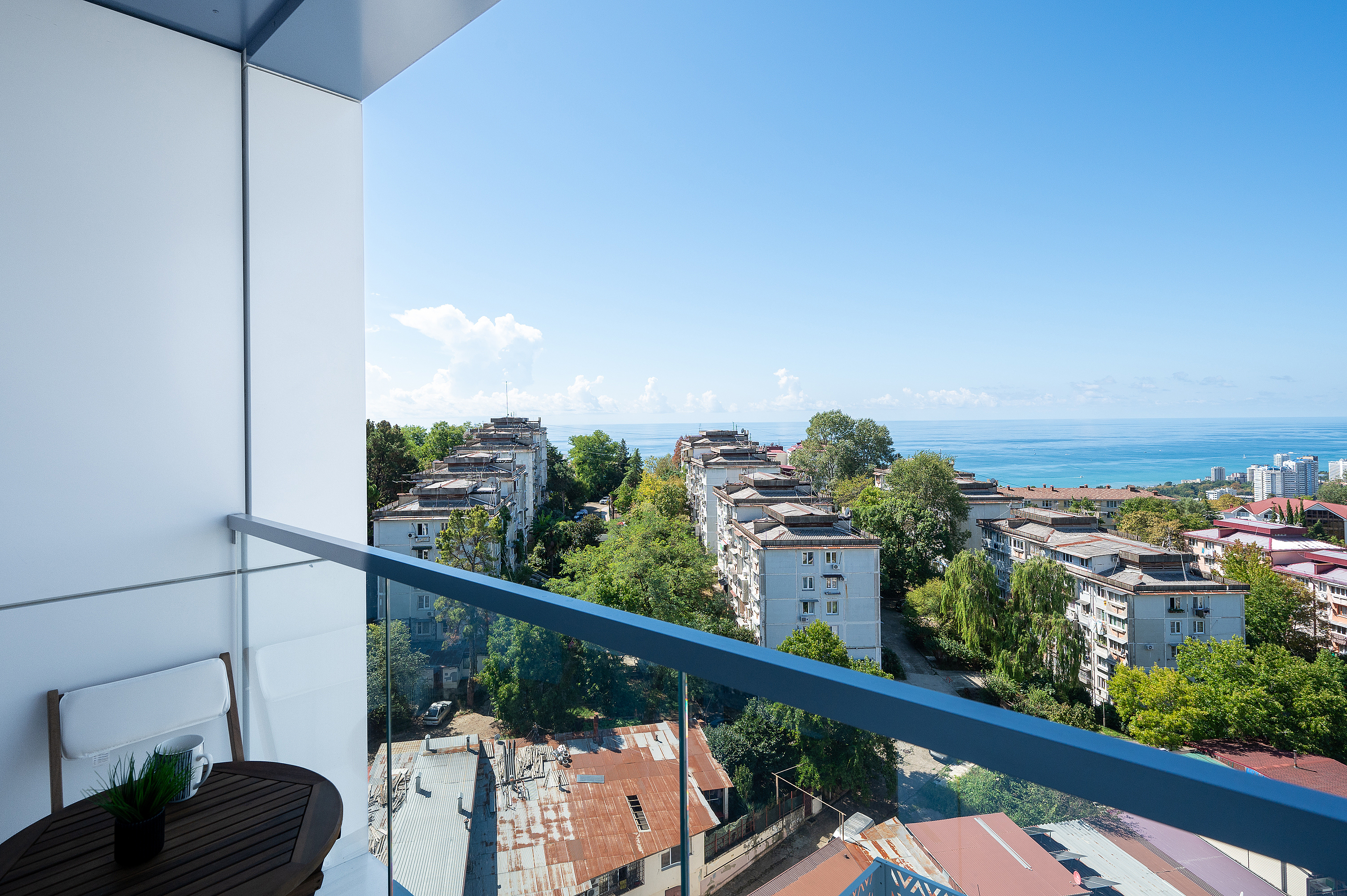 Апартаменты «Кислород 218» - Ваши личные море и горы в Сочи. Забудьте о стандартных отелях. Перед Вами апартаменты премиум-класса в элитном жилом комплексе «Кислород» с панорамным видом на море и Кавказские горы. Здесь каждый день начинается с кофе на балконе под шум волн и заканчивается закатом над горизонтом.