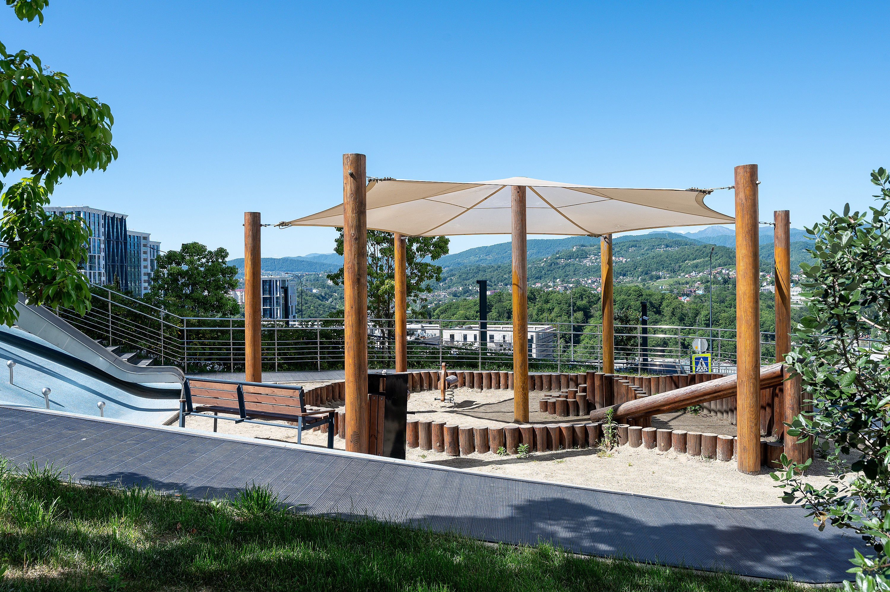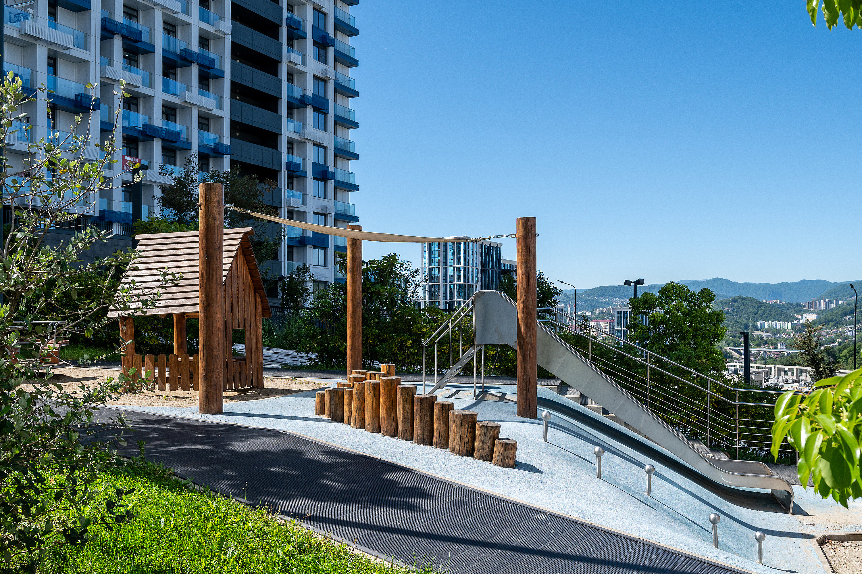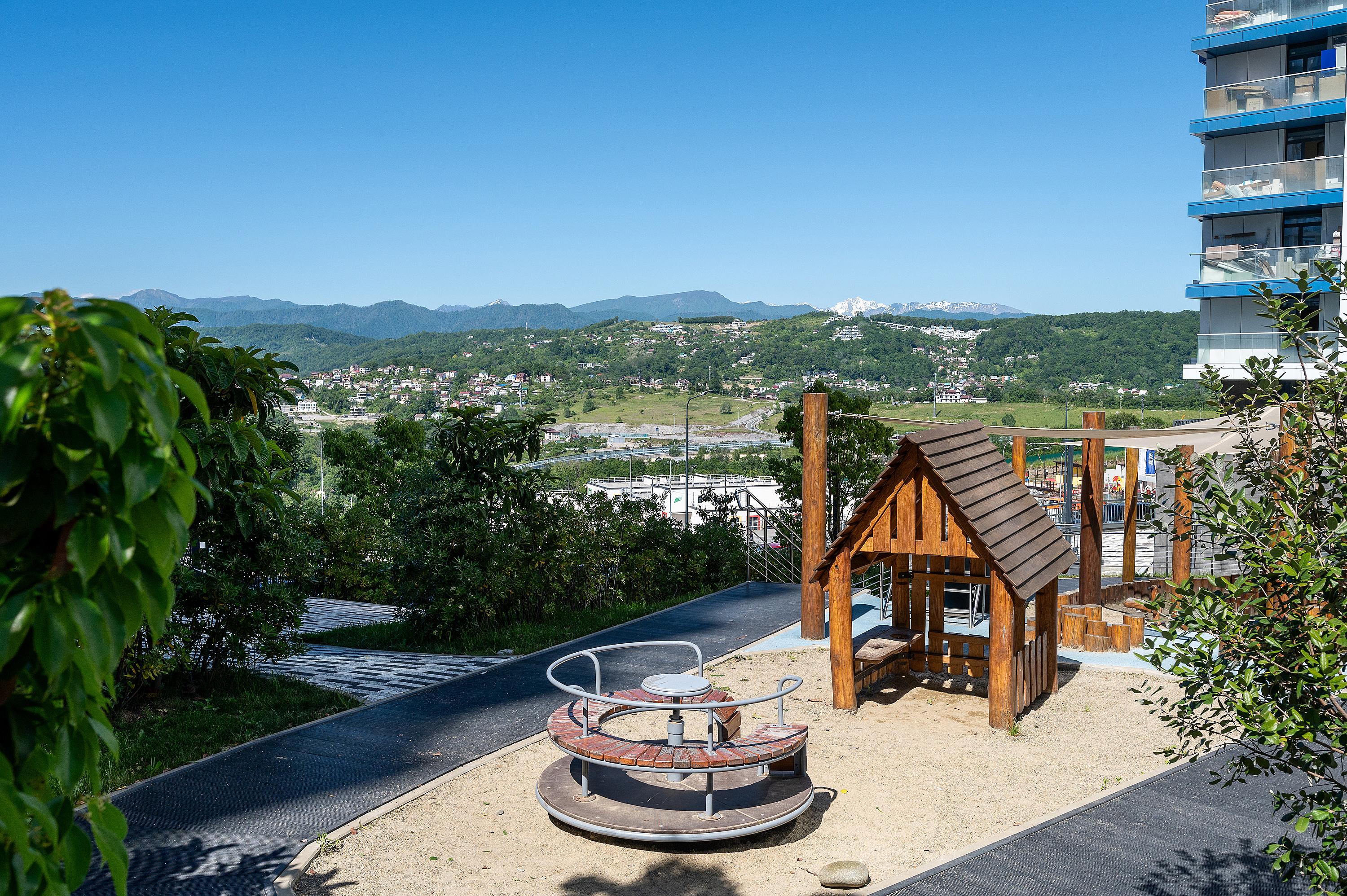Район зеленый, тихий, с парком и детскими площадками. Выйти из дома и Вы уже на дублере Курортного проспекта (никаких пробок). Идеальное расположение: 10 минут до центра Сочи на авто, 15 минут - до ж/д вокзала, 25 минут - до аэропорта, 30 минут - до Олимпийского парка, 50 минут - до «Роза Хутор».