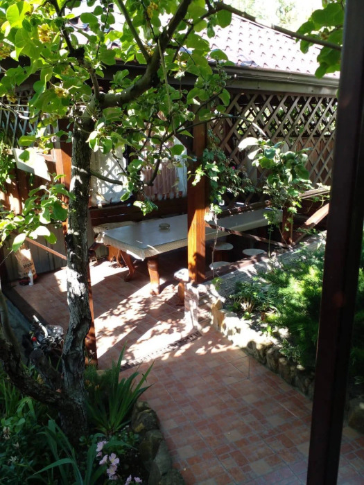 К услугам гостей просторный, утопающий в зелени двор с беседкой и местом для отдыха, в наличии две оборудованные всем необходимым кухни.