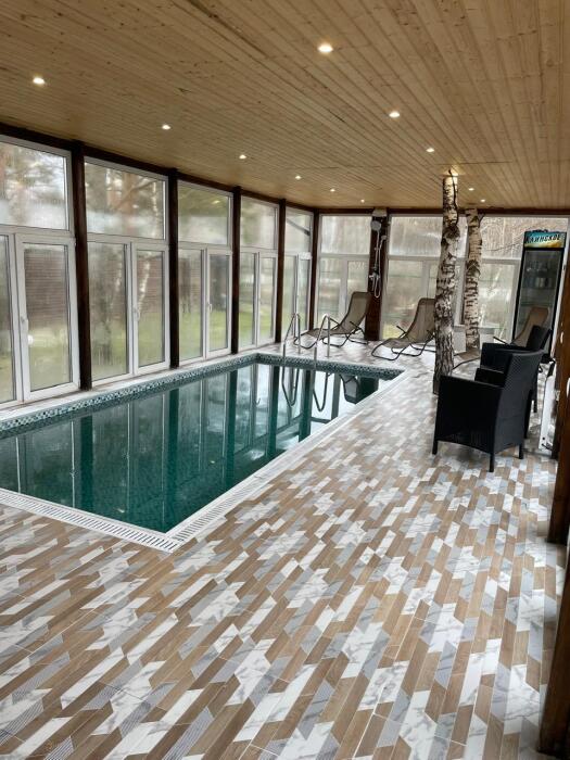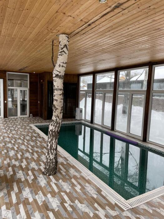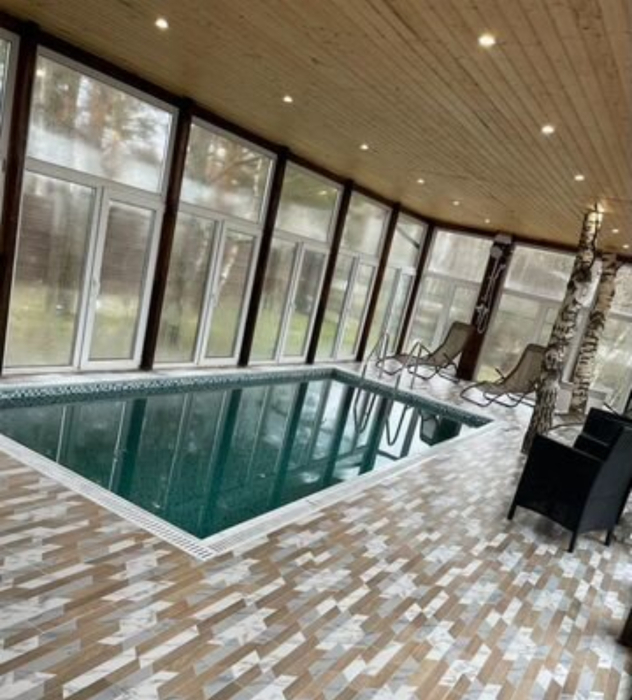 Для уютных вечеров под открытым небом предусмотрено освещение участка. В целях безопасности организовано круглосуточное видеонаблюдение. Аренда дома отдыха доступна с бассейном и без. По желанию заказчика дом отдыха оформляется в романтическом стиле.