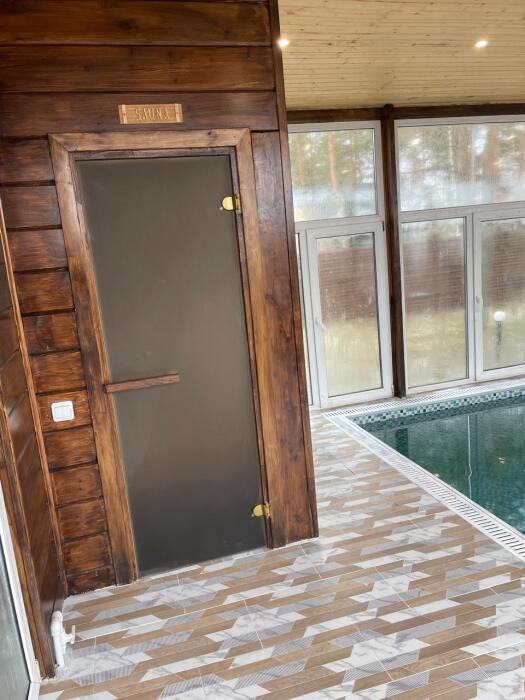 В коттедже имеется вся мебель, бытовая техника, кухонные принадлежности для комфортного проживания. Доступ в интернет - через WiFi. На территории участка имеется зона барбекю. В комплексе работает финская баня с бассейном, летним душем, шезлонгами. Территория граничит с небольшим водоемом: выход на него есть со двора.