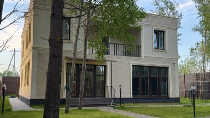 Двухэтажный дом в современном стиле оборудован всеми устройствами и коммуникациями:
