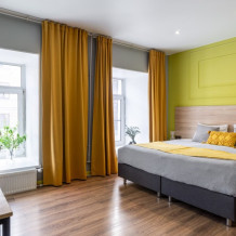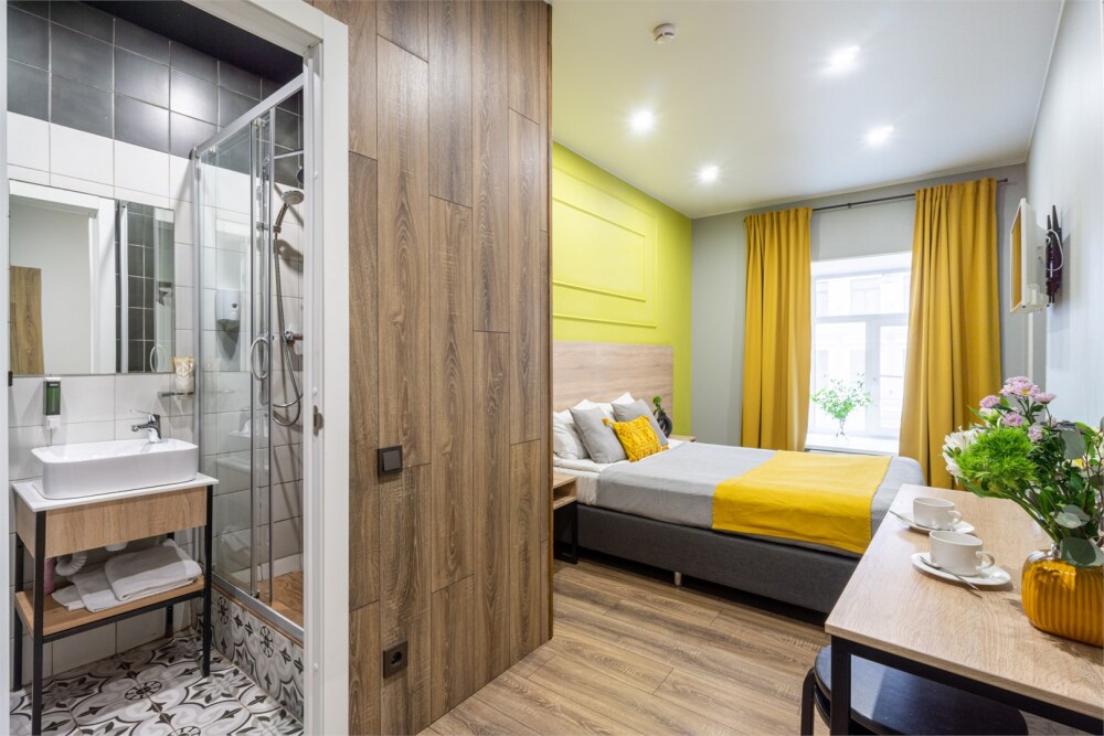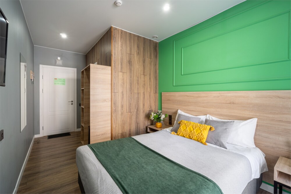Гости могут забронировать номера категорий Стандарт, Улучшенный, Делюкс и Апартаменты. В каждом из них есть все необходимое для комфортного проживания: кровать, прикроватные тумбочки, стол, стулья, шкаф, ЖК-телевизор, сейф, телефон, электрический чайник, мини-бар, душ, туалет, фен, отопление, звукоизоляция, туалетно-косметические принадлежности, постельное белье, полотенца, тапочки, вешалки для одежды, подключение к кабельному и цифровому телевидению, доступ к беспроводной сети WI-FI. В Апартаментах есть собственная кухня.