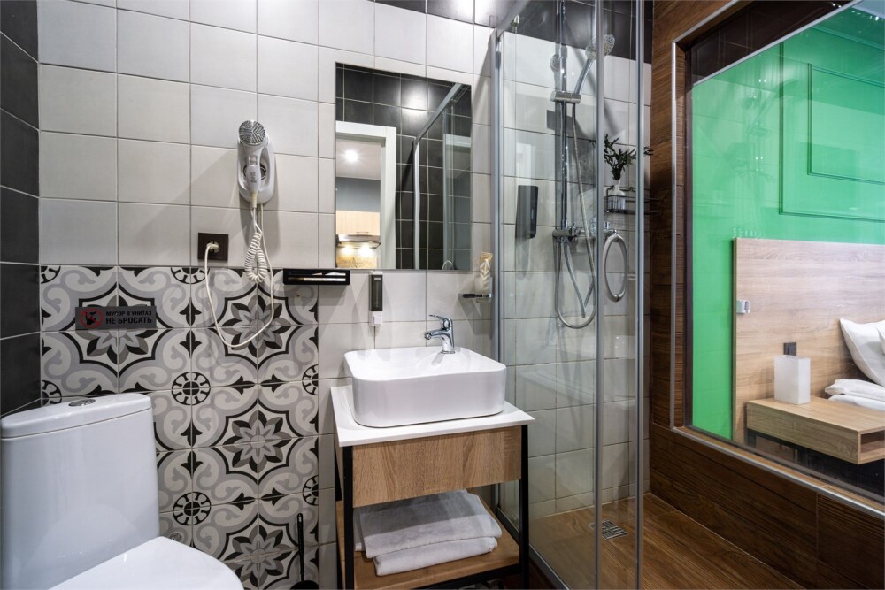 В номере: двуспальная кровать размера «king size», прикроватные тумбочки, стол, стулья, ЖК-телевизор, шкаф, сейф, телефон, электрический чайник, мини-бар, туалет, фен, отопление, ванная, звукоизоляция, туалетно-косметические принадлежности, постельное белье, полотенца, тапочки, вешалки для одежды, подключение к кабельному и цифровому телевидению, доступ к беспроводной сети WI-FI.