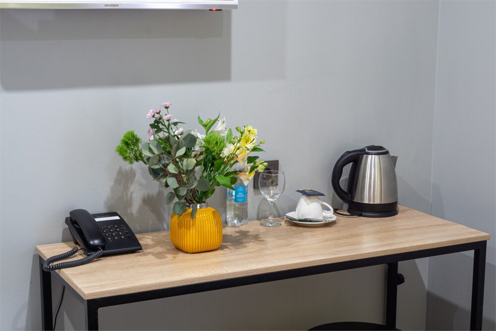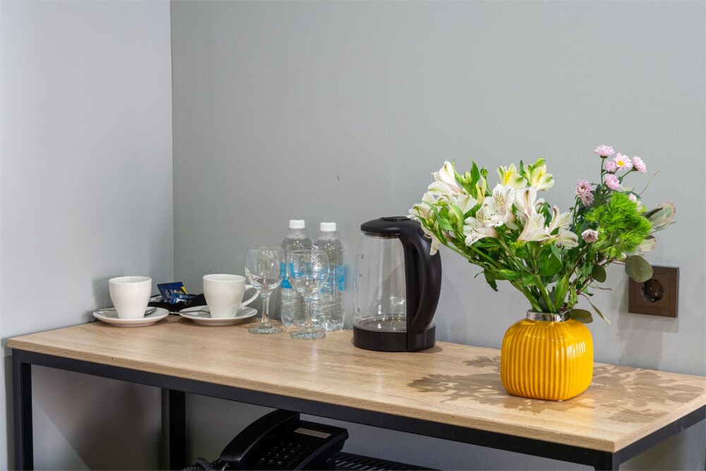 В номере: две односпальные кровати, прикроватные тумбочки, стол, стулья, ЖК-телевизор, шкаф, сейф, телефон, электрический чайник, мини-бар, душ, туалет, фен, отопление, звукоизоляция, туалетно-косметические принадлежности, постельное белье, полотенца, тапочки, вешалки для одежды, подключение к кабельному и цифровому телевидению, доступ к беспроводной сети WI-FI.