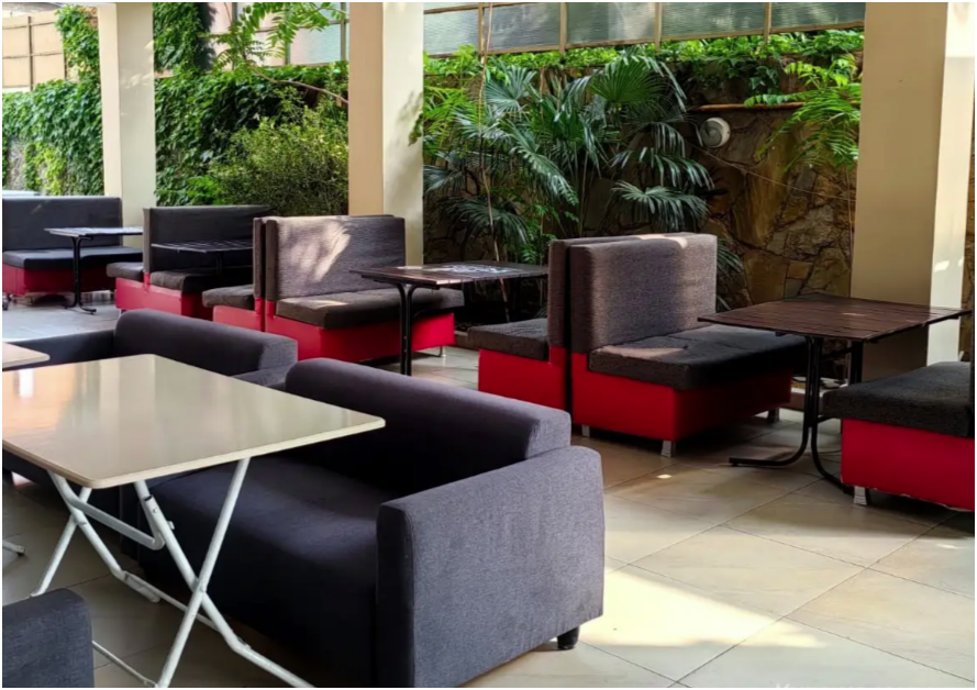 На первом этаже оборудована кухня для самостоятельного приготовления пищи. Если у вас нет желания готовить, на территории работает кафе. Посадочные места расположены в кафе и на улице. Здесь вас ждут вкусные завтраки, комплексные обеды и ужины, а также различные блюда на мангале и разнообразие напитков.