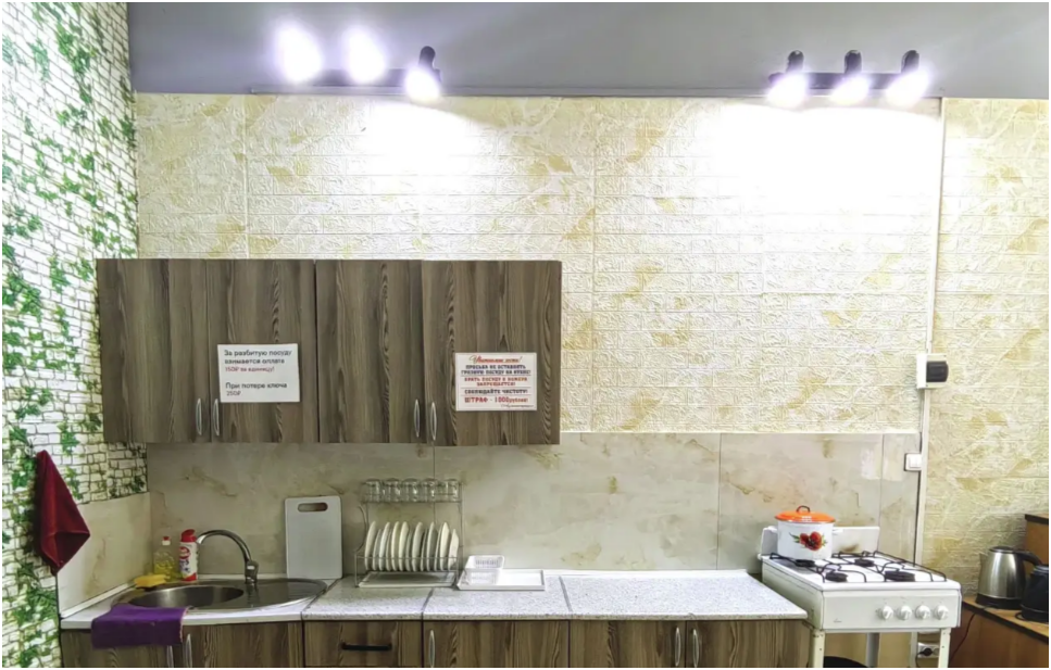 Комфортный 2-комнатный номер с мини кухней и размещением до 7 гостей. В номере: две комнаты, оборудованная мини кухня, холодильник и чайник. В каждой комнате телевизор, кондиционер, Wi-Fi, стол, стулья и шкаф. Санузел с ванной в номере. Постельное бельё, пледы и полотенца предоставляются. Чайник, гладильная доска и утюг на этаже.