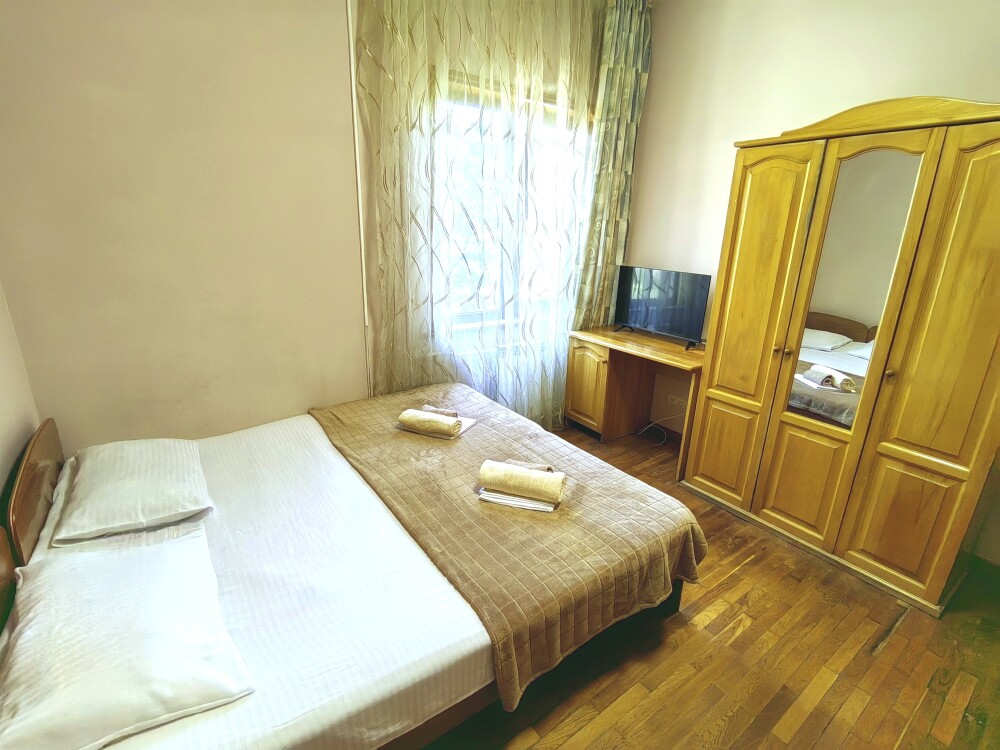 Комфортный номер с размещением до 2 гостей. В номере: телевизор, холодильник, кондиционер, Wi-Fi, стол, стулья, шкаф и санузел, душ и балкон. Постельное бельё, пледы и полотенца предоставляются. Чайник, гладильная доска и утюг на этаже.