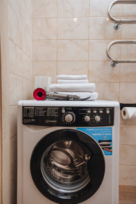Мы позаботились о комфорте наших гостей: в квартире есть холодильник, микроволновая печь, чайник, плита, тостер, фен, сушилки для обуви, утюг, гладильная доска, телевизоры, гейзерная кофеварка. В Вашем распоряжении матрасы, подушки, одеяла, постельное белье, полотенца и все средства гигиены, фен, стульчик для кормления. Есть бесплатный WI-FI.