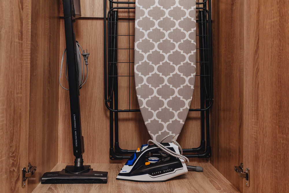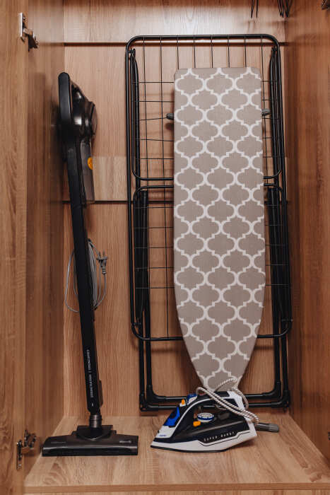 - Телевизор, фен, утюг и гладильная доска, сушилка.